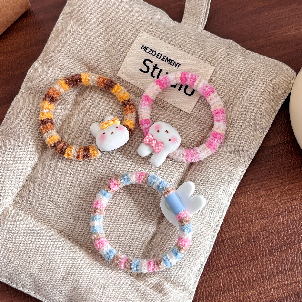 可爱蝴蝶结小兔发圈卡通森女马卡龙发绳软萌少女清新学生头绳