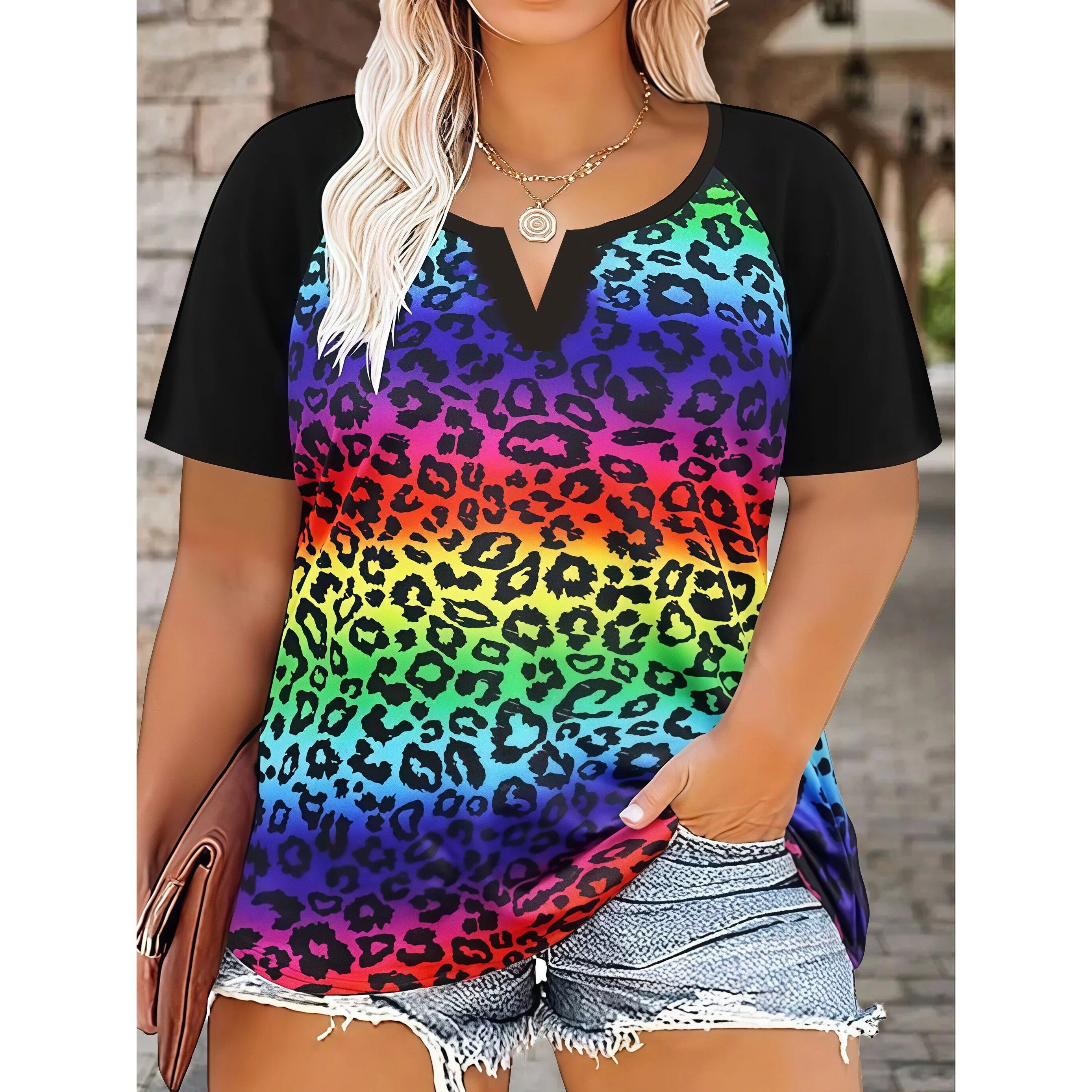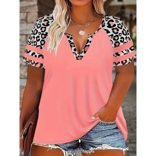 Fit Shor Women Print Floral Leopard Loose Casual Size Plus