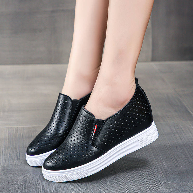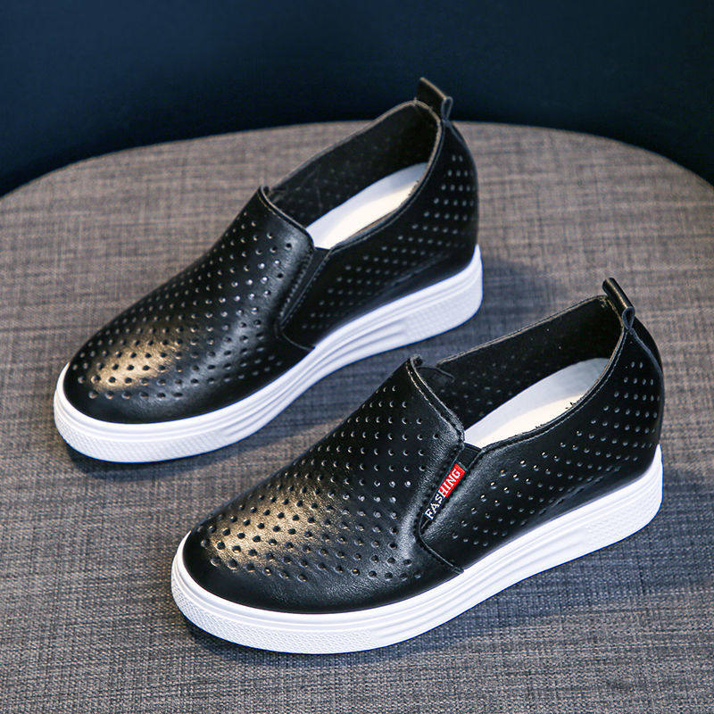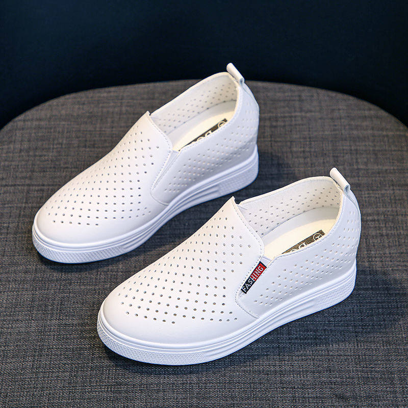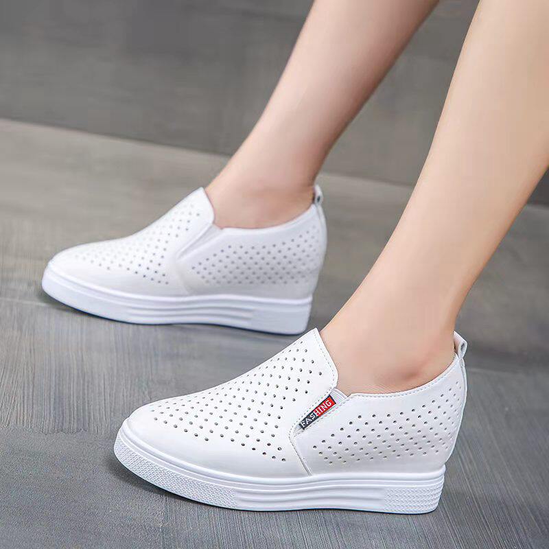 休闲女鞋 坡跟单鞋 女内增高厚底百搭一脚蹬网鞋 春夏镂空透气小白鞋