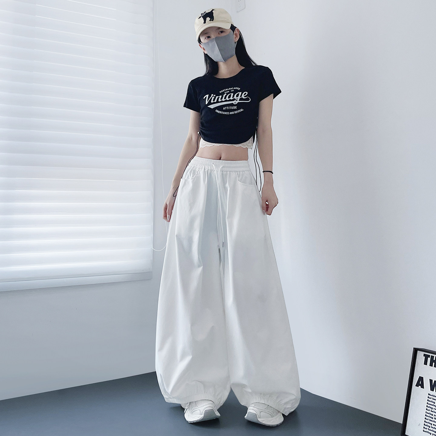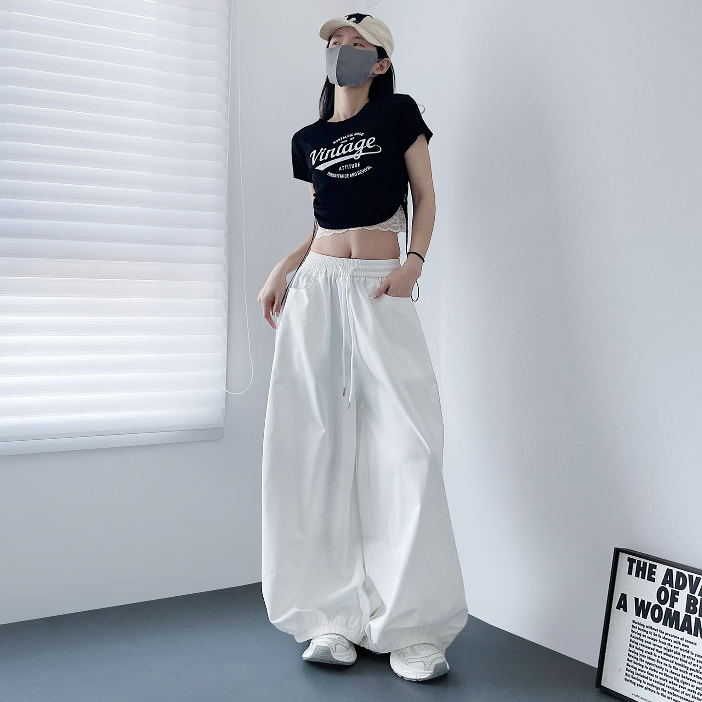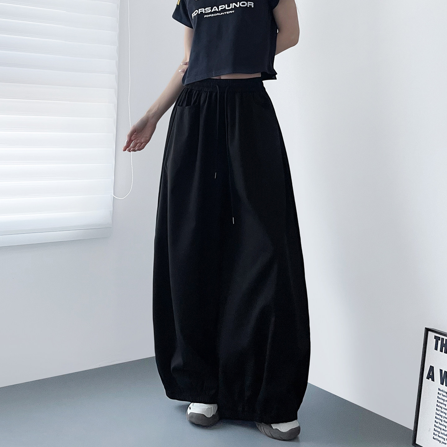 大裤 胖mm宽松显瘦束脚休闲裤 腿酷飒黑色运动裤 新款 子 2026春季 大码