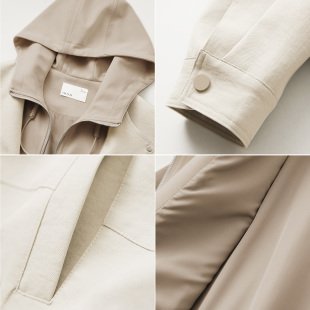 新款 春季 夹克外套 风衣女款 IHIMI海谧花苞型立翻领假两件连帽短款