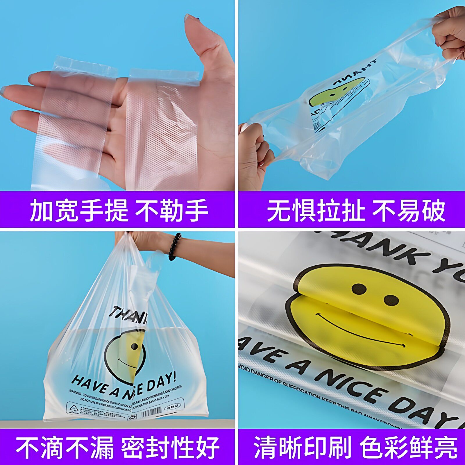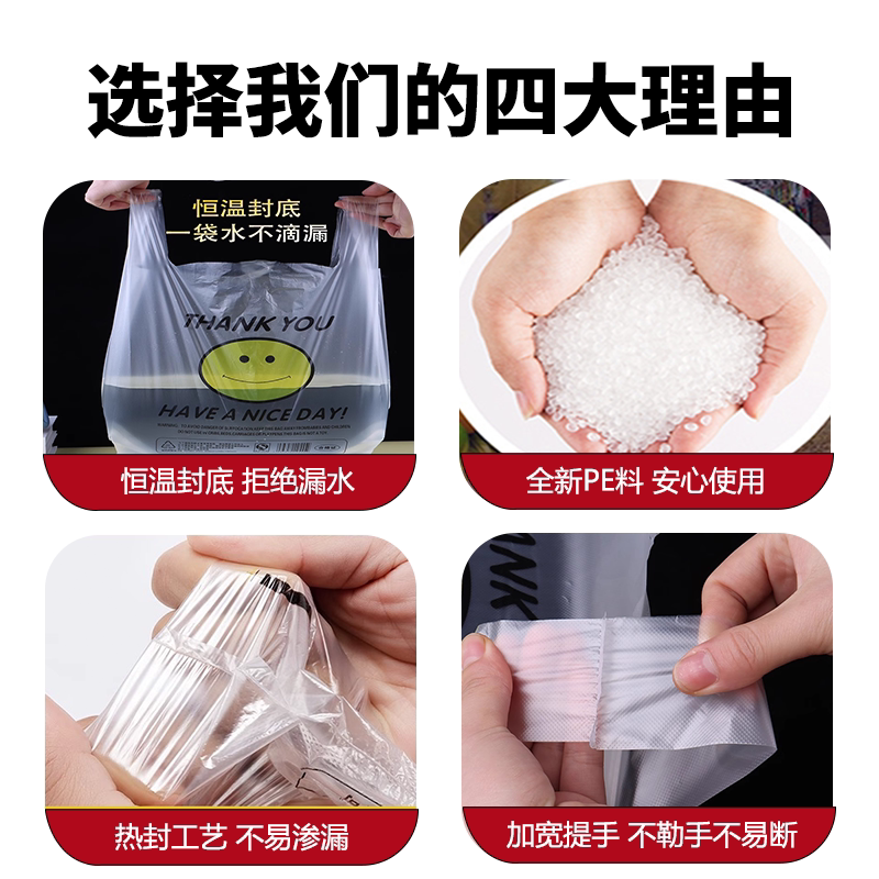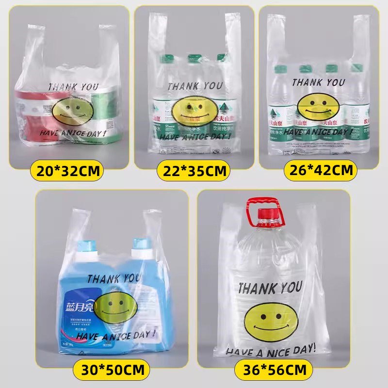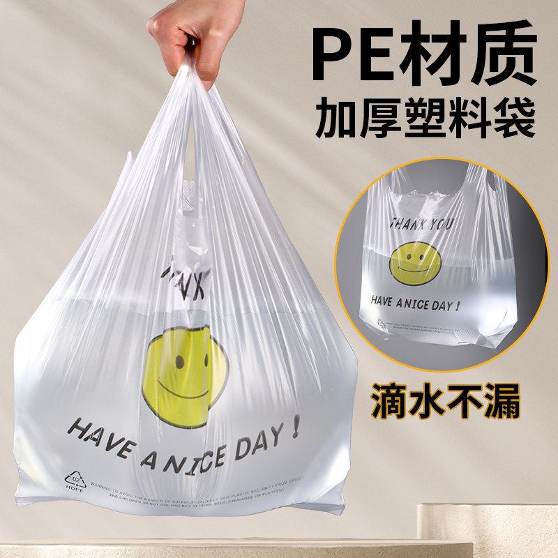 加厚笑脸塑料袋批发透明背心式 外卖打包袋子超市方便袋手提垃圾袋