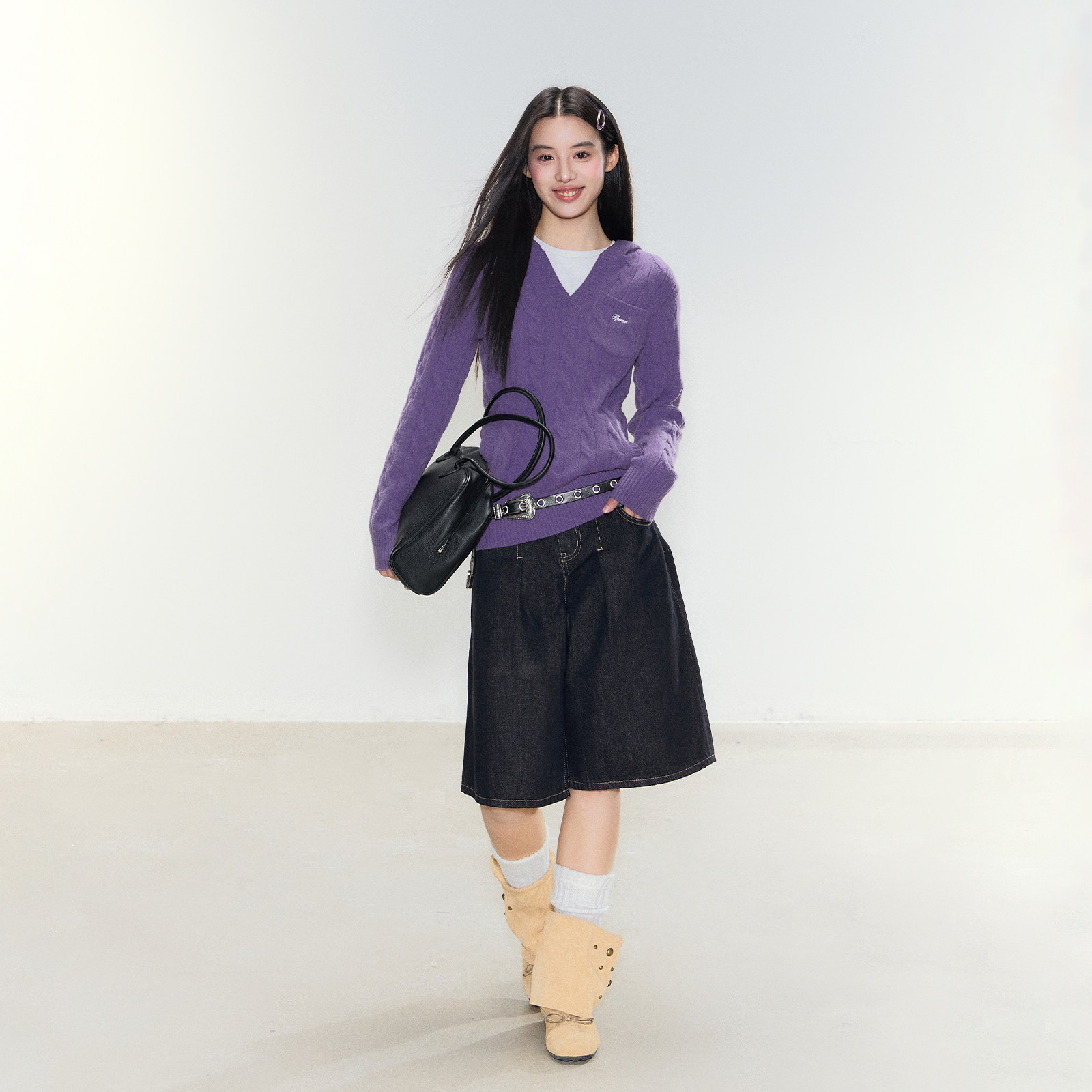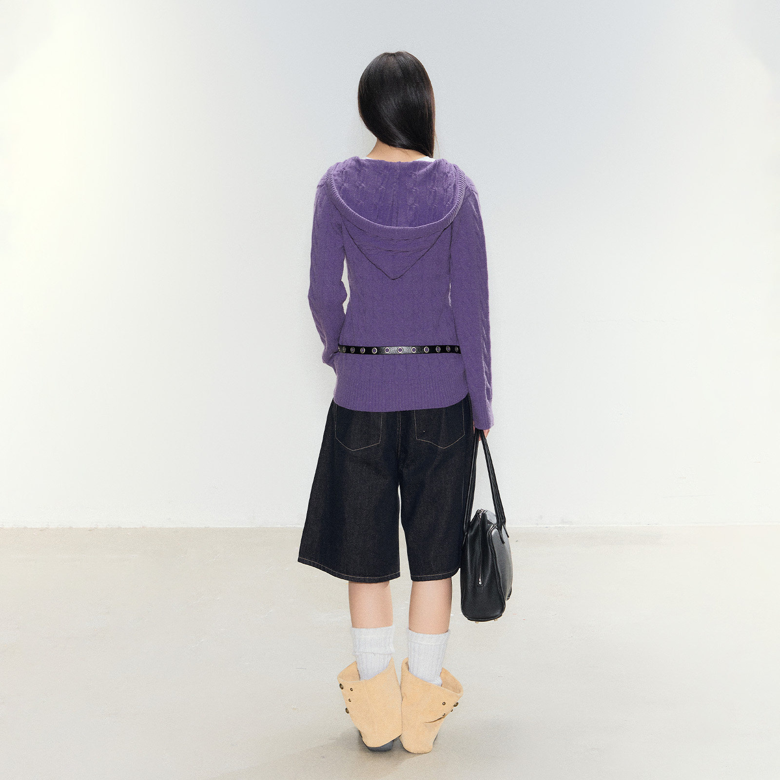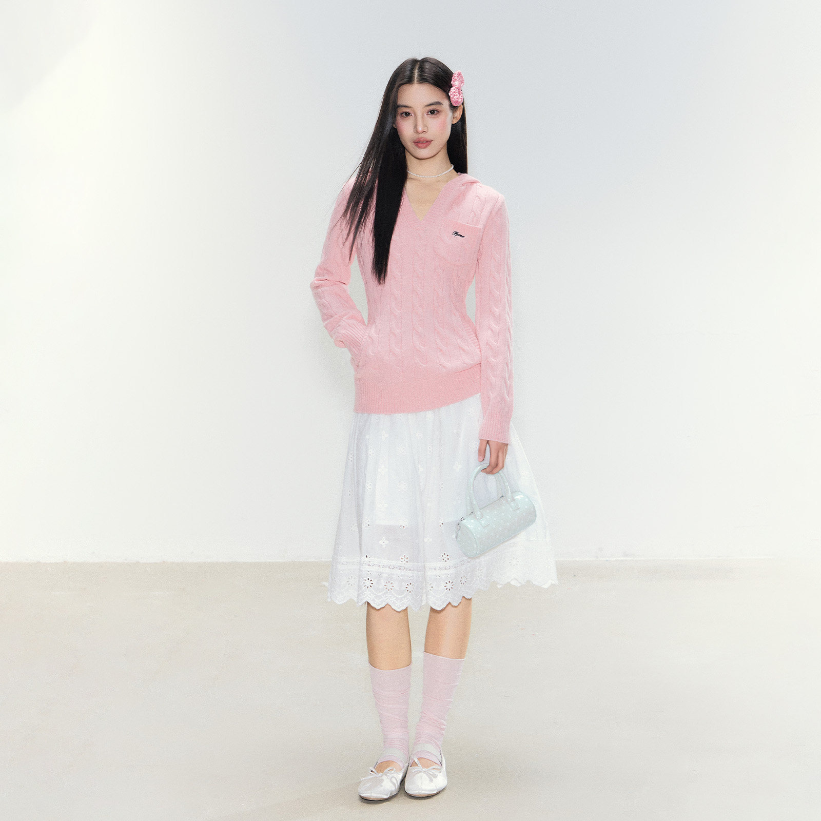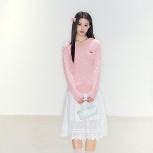 麻花纹套头毛衣简约韩系上衣 连帽v领小口袋修身 FPMZ 风絮轻衫