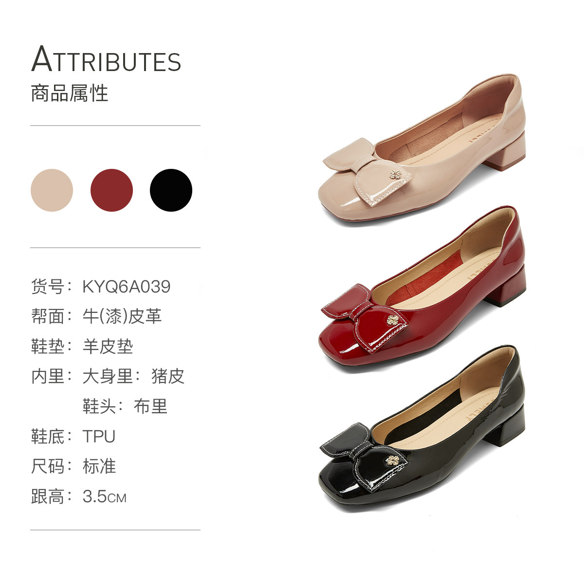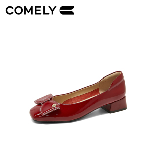 中低跟浅口鞋 康莉牛皮革粗跟单鞋 漆皮红色高跟鞋 新款 子 女2026春季