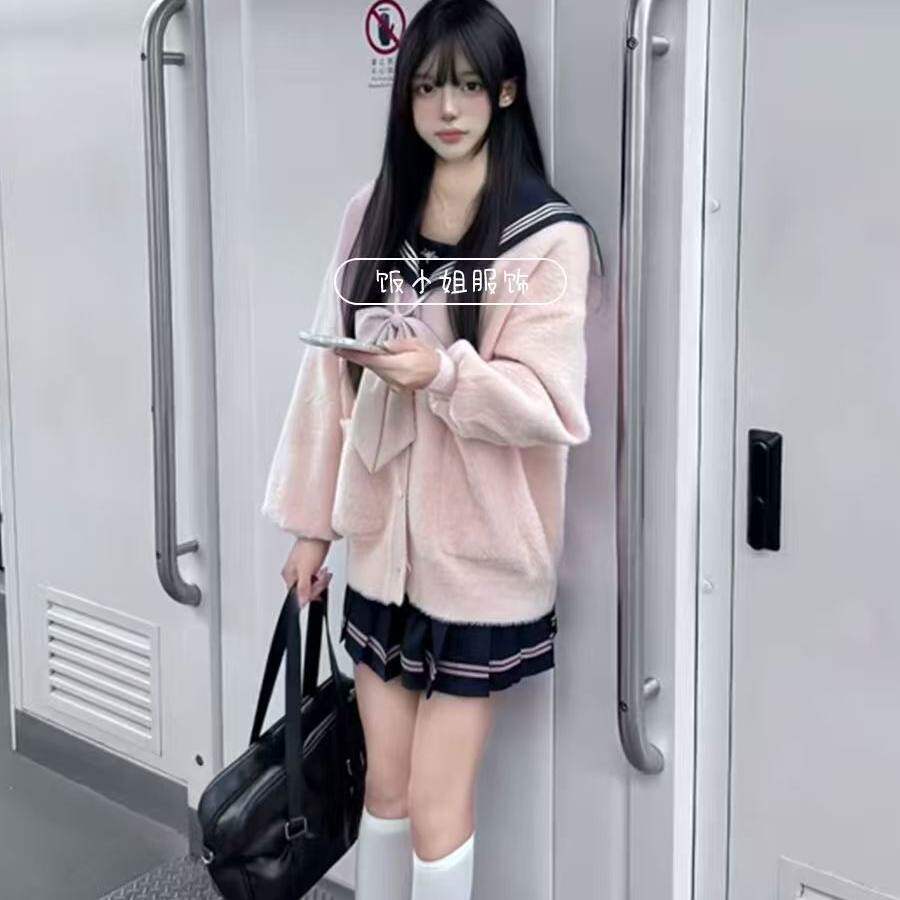 毛衣外套 针织衫 学院风JK小月眠开衫 加厚毛茸茸叠穿外秋冬新款