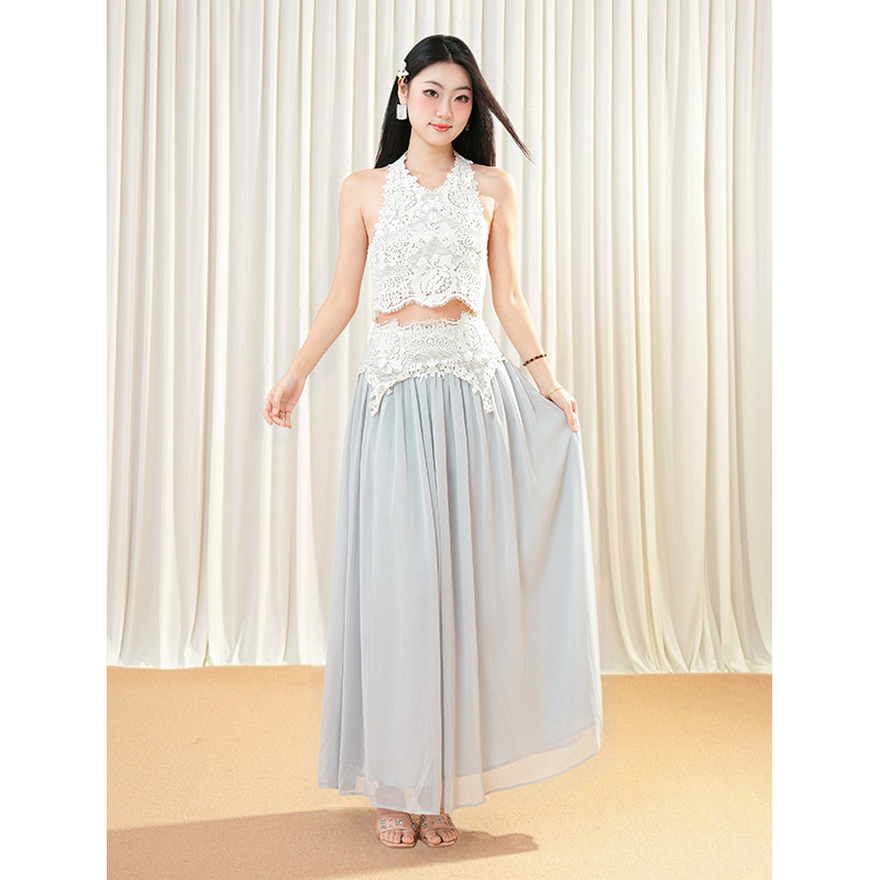 女夏季 长裙套装 白月光氛围感穿搭精致蕾丝上衣 新款 卢浮幻境