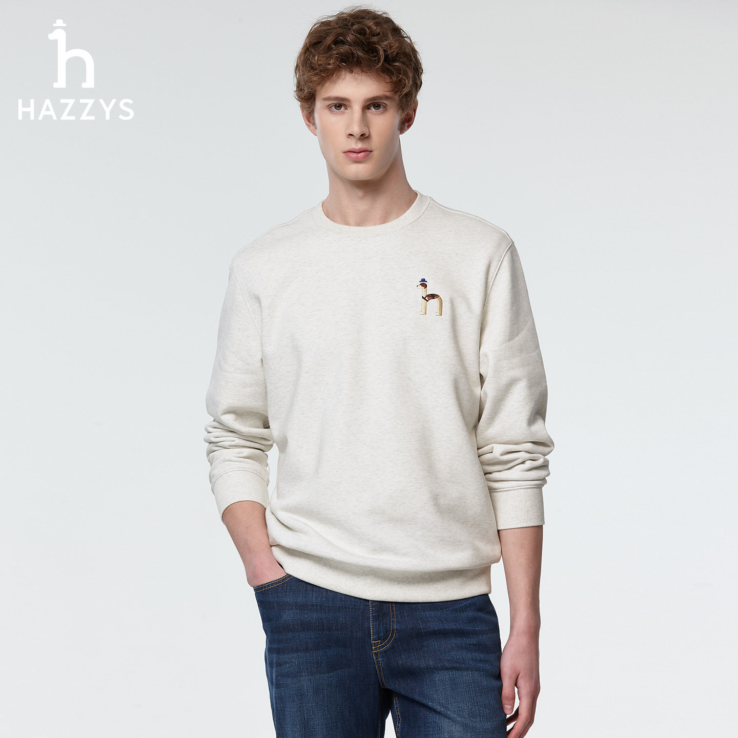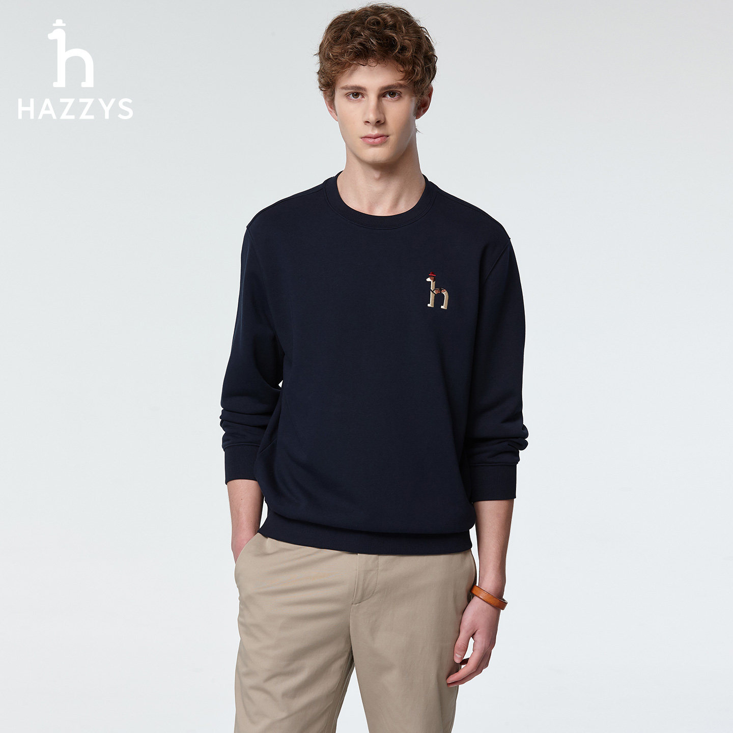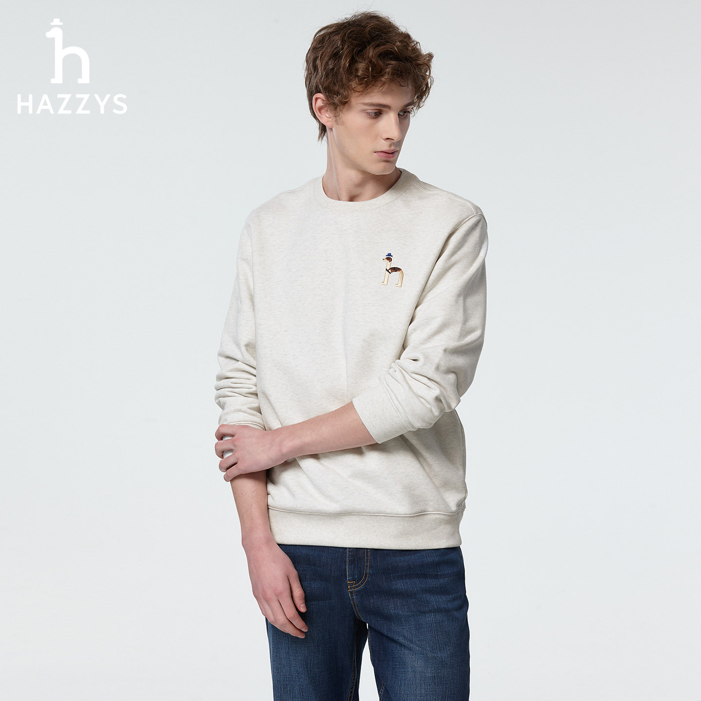男装 休闲T恤上装 时尚 卫衣男士 潮流圆领长袖 Hazzys哈吉斯奥莱春季
