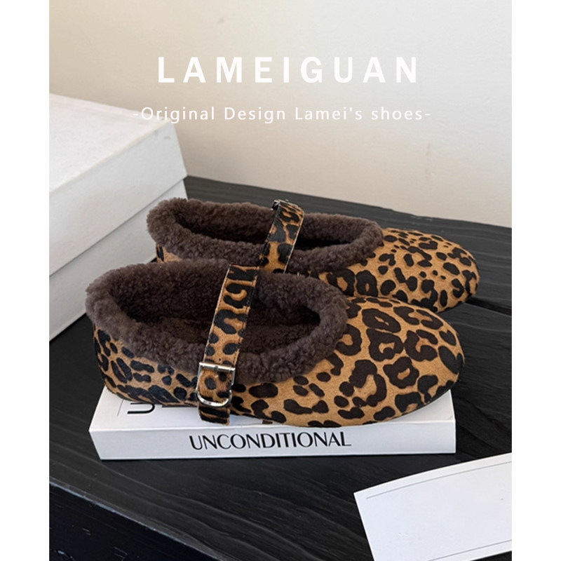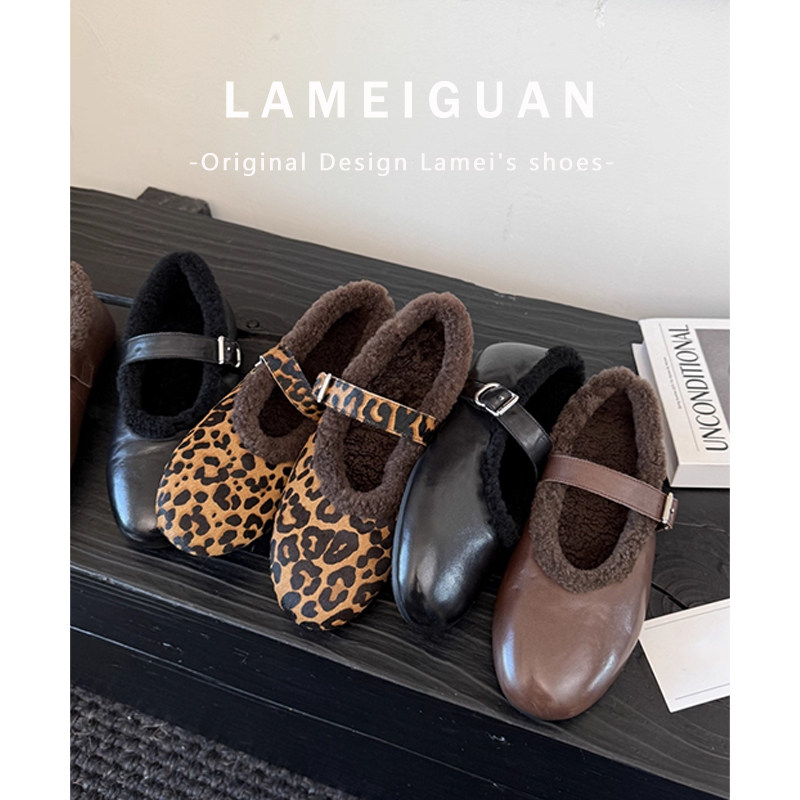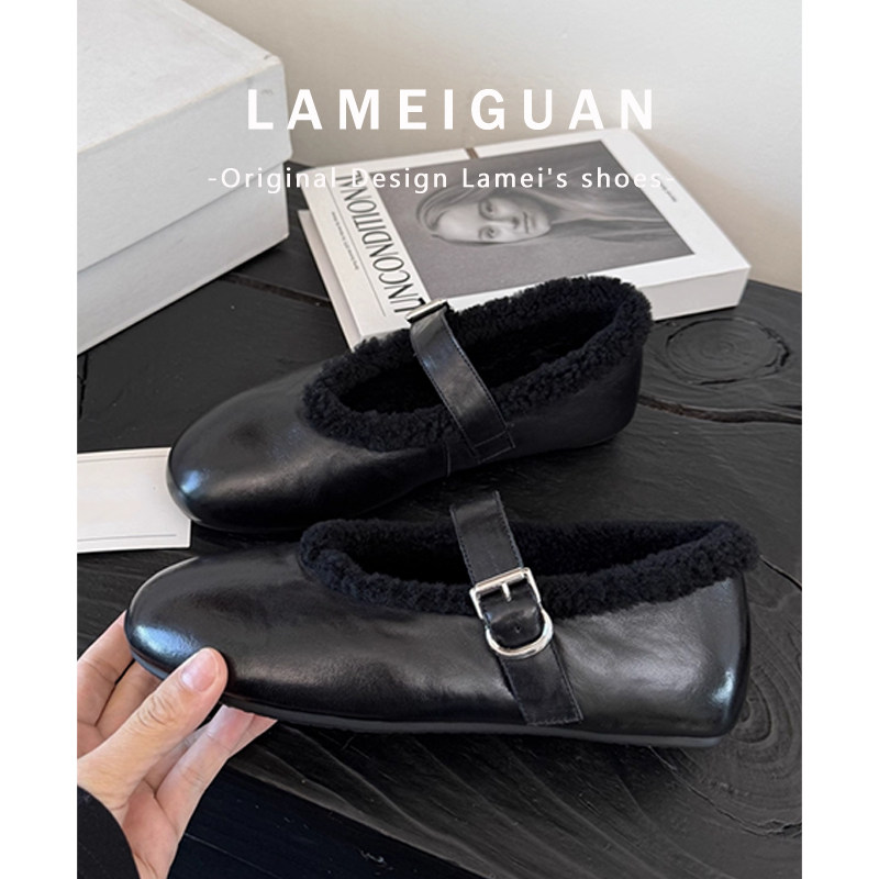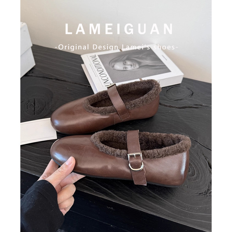 浅口加绒保暖棉鞋 名媛气质时尚 女 水钻方扣平底单鞋 2025年秋冬新款