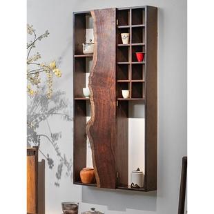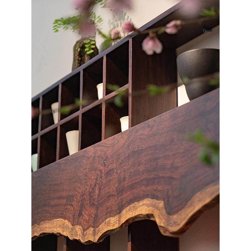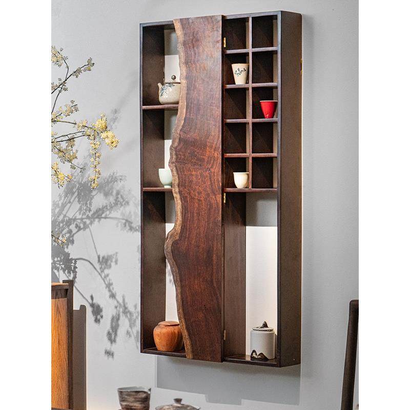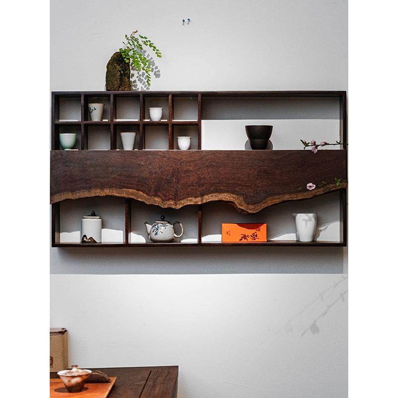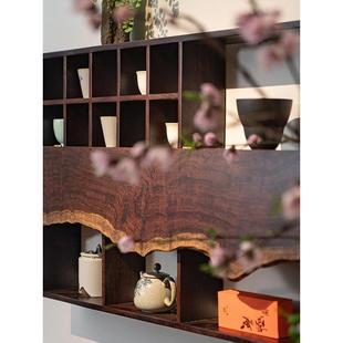 原木侘寂黑檀木挂墙式 博古架茶杯架墙面多宝阁茶具收纳架展示架