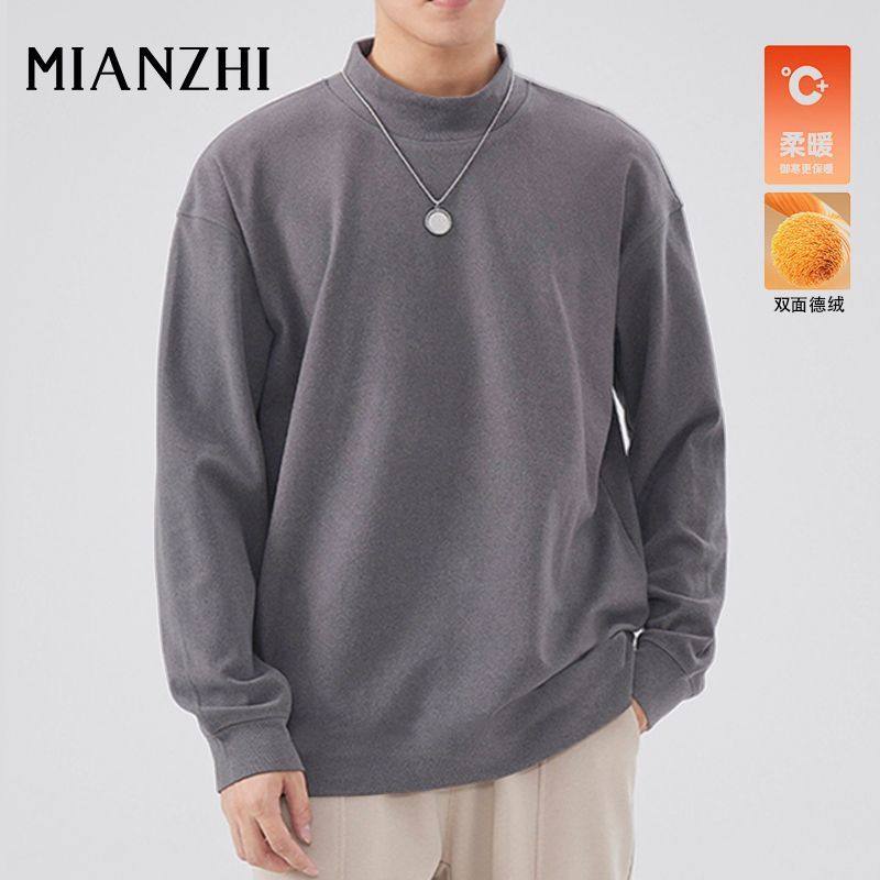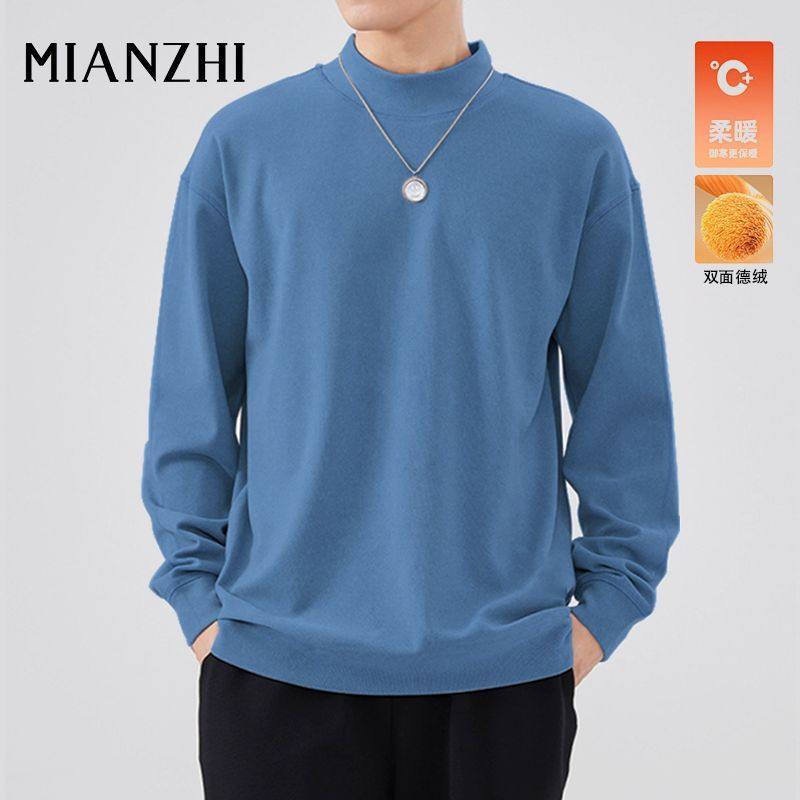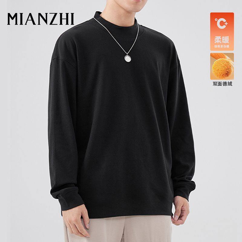 秋冬季 百搭保暖半高领打底衫 长袖 纯色休闲款 上衣 内搭新款 棉致男装
