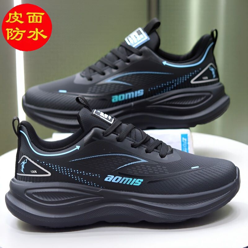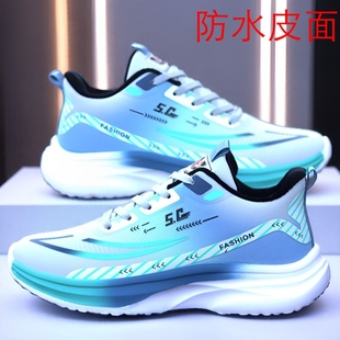 百搭超轻便防滑跑步青少年学生运动鞋 加绒男鞋 皮面防水软底休闲鞋