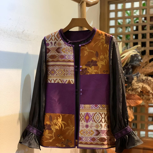 四季 一丝牵 小衫 长袖 可穿 100桑蚕丝花罗真丝上衣女国风气质灯笼袖