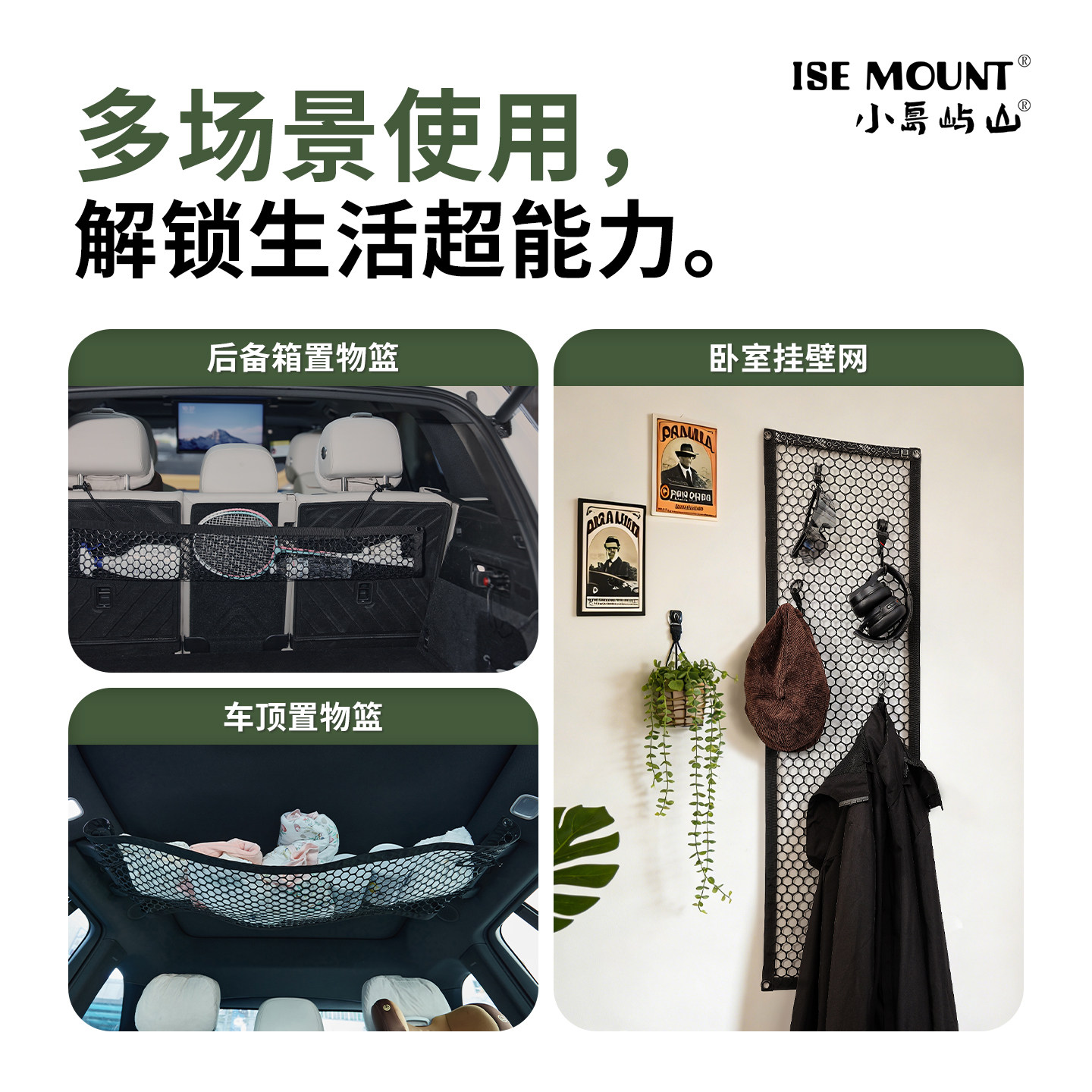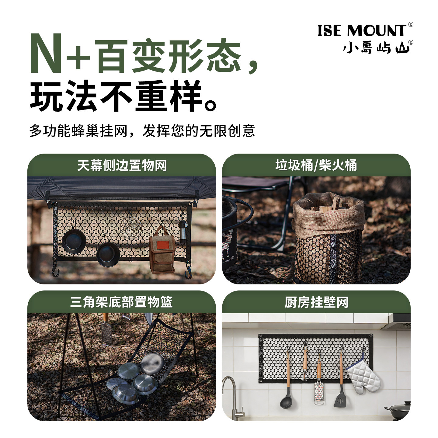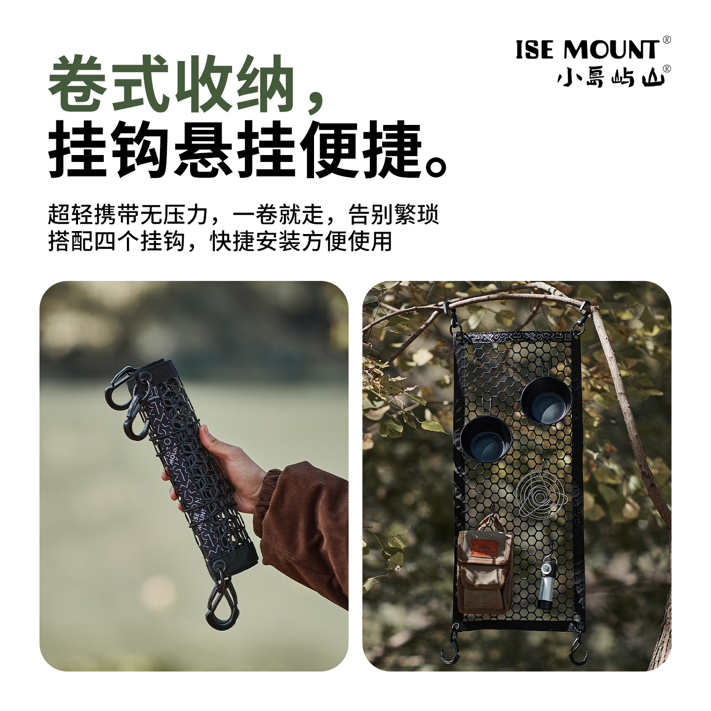 ISE MOUNT户外置物挂网露营三角架置物挂网车顶收纳多功能置物篮