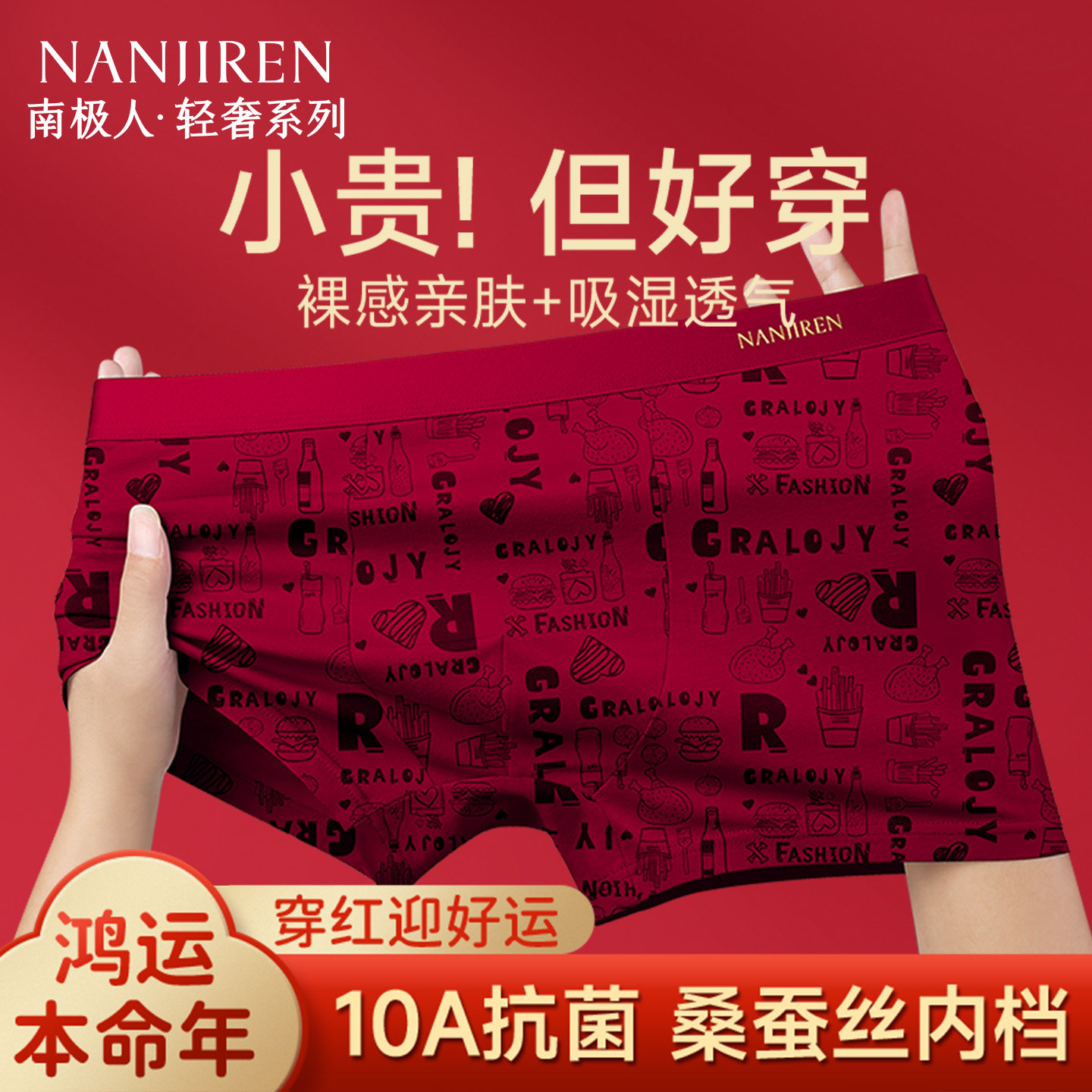 纯棉大红色结婚礼物属蛇四角短裤 男生平角裤 内裤 恒源祥本命年男士