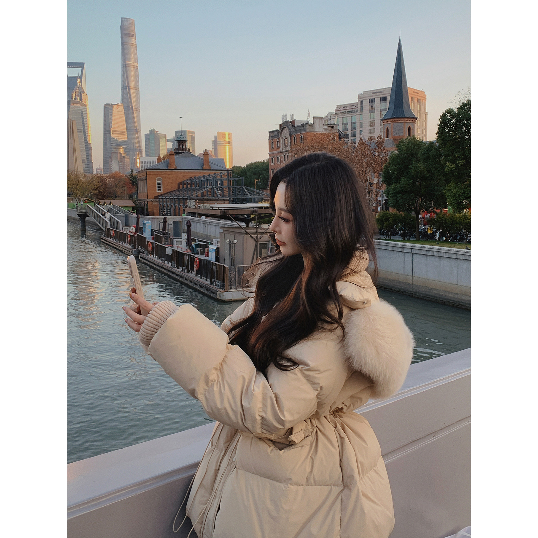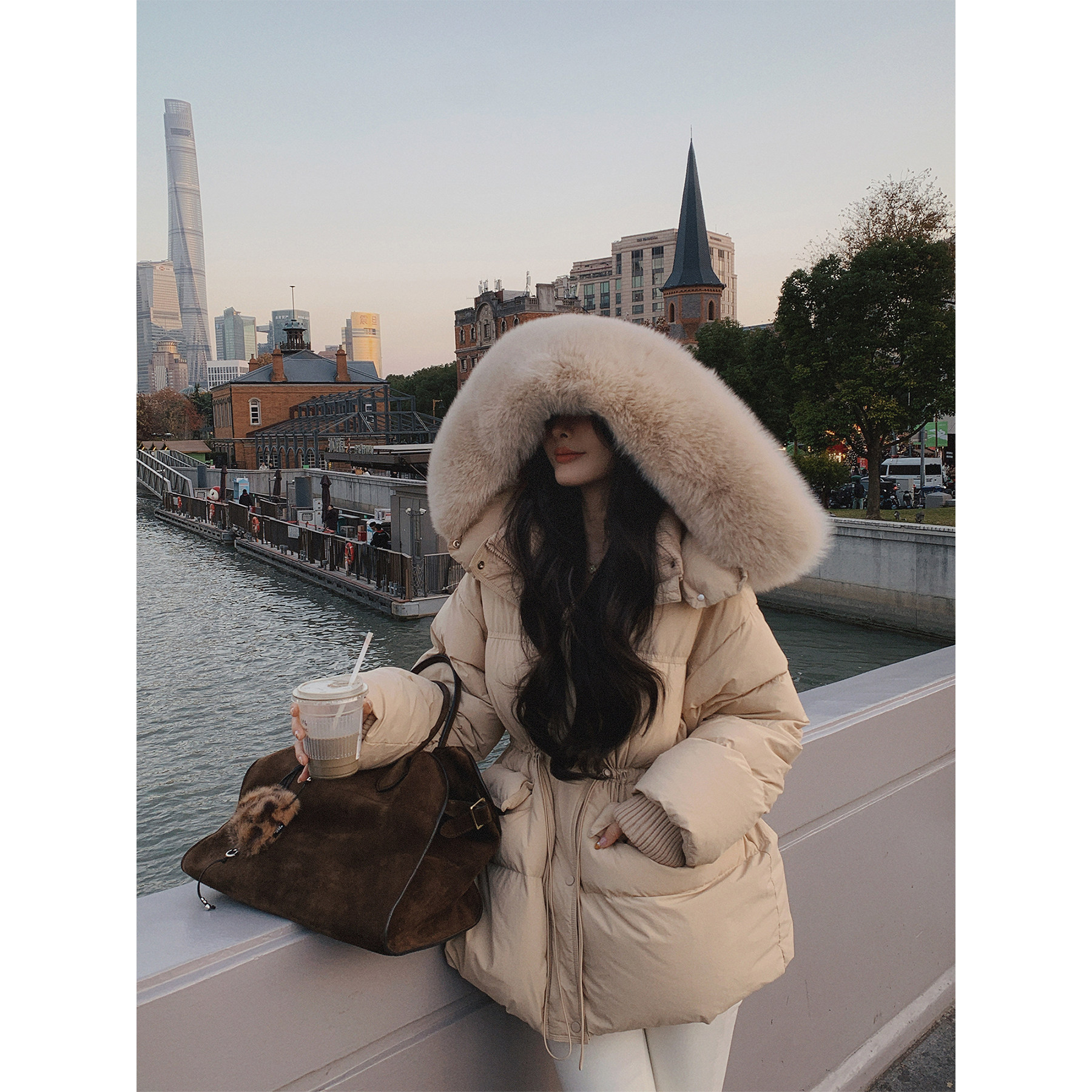 10AM徐琳「爱丁堡暖冬」连帽收腰狐狸大毛领90白鸭绒羽绒服