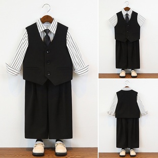 礼服英伦风帅气时髦洋气男童西服 高级感轻奢法式 儿童西装 马甲套装