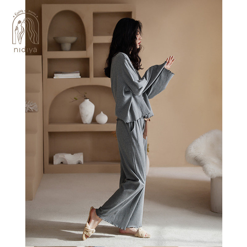 家居服套装 长袖 女高级时尚 睡衣新款 半边绒 冬装 WildRooms明星同款