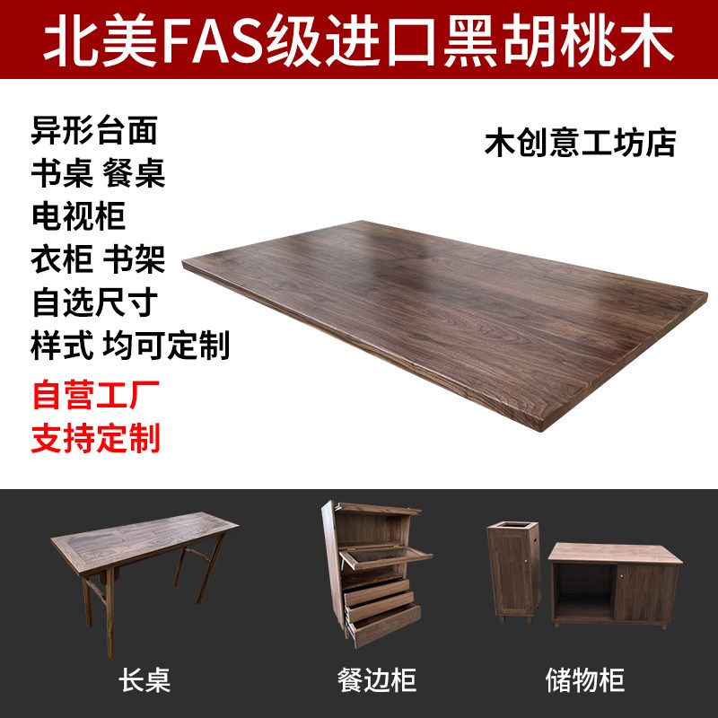 北美黑胡桃木料定制桌面板餐桌茶几电视柜衣柜原实木板材家具定做