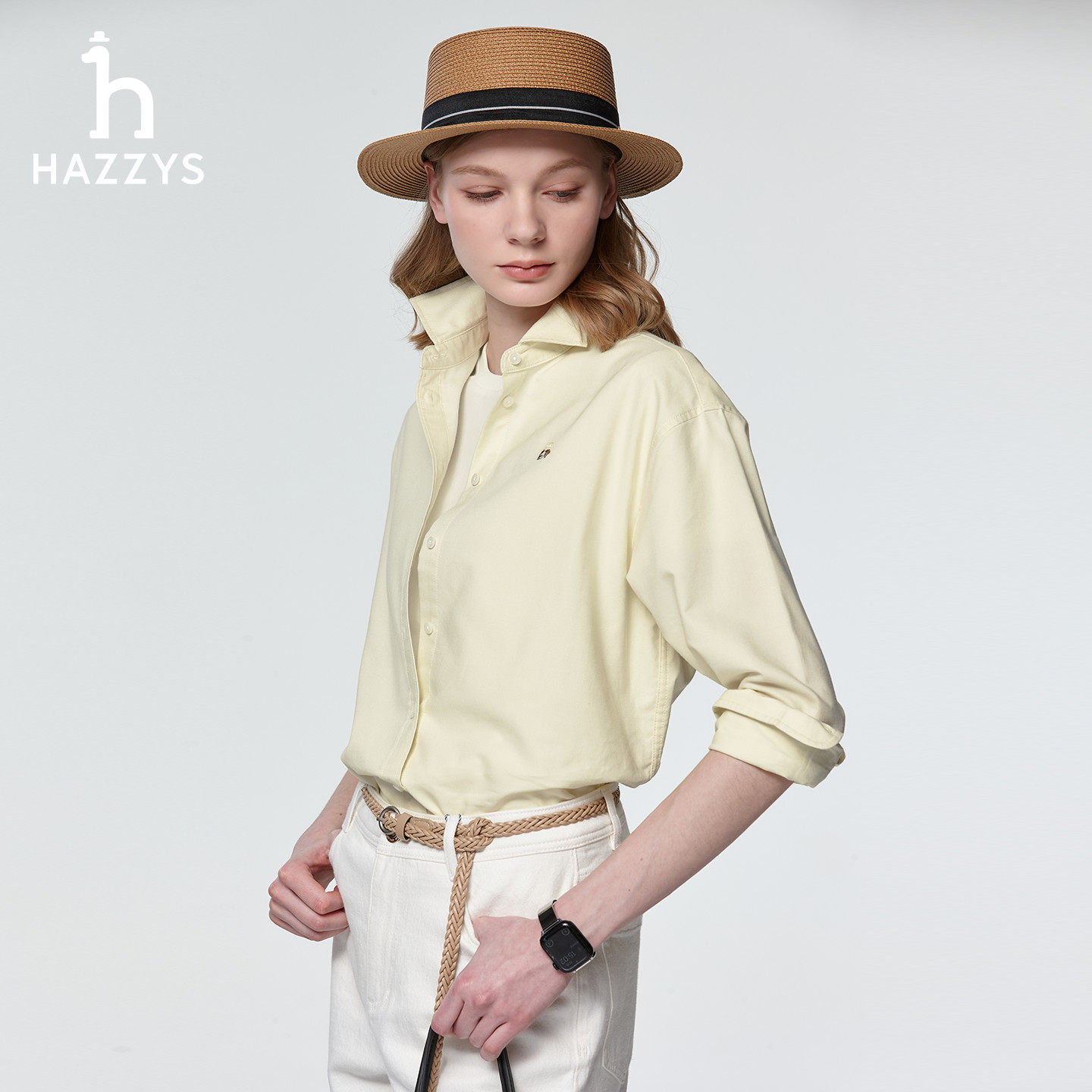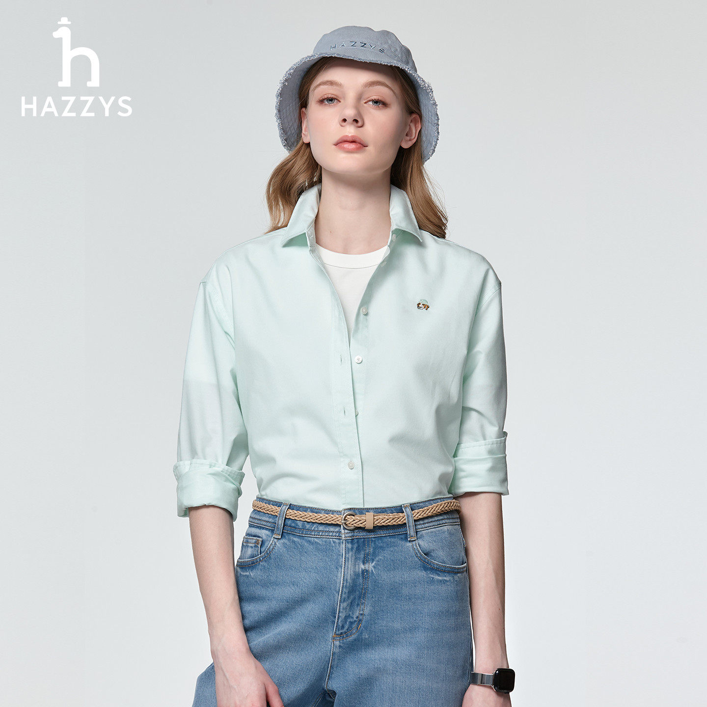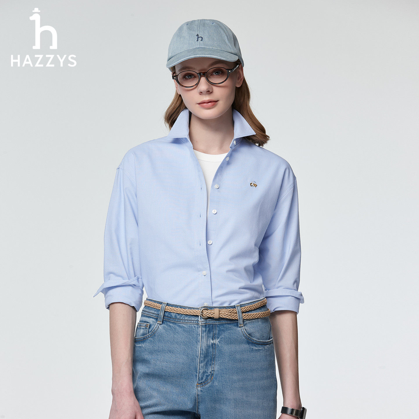 女春季 衬衫 Hazzys哈吉斯长袖 潮流休闲衬衣通勤上衣 宽松牛津纺