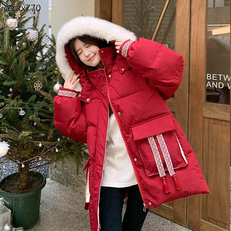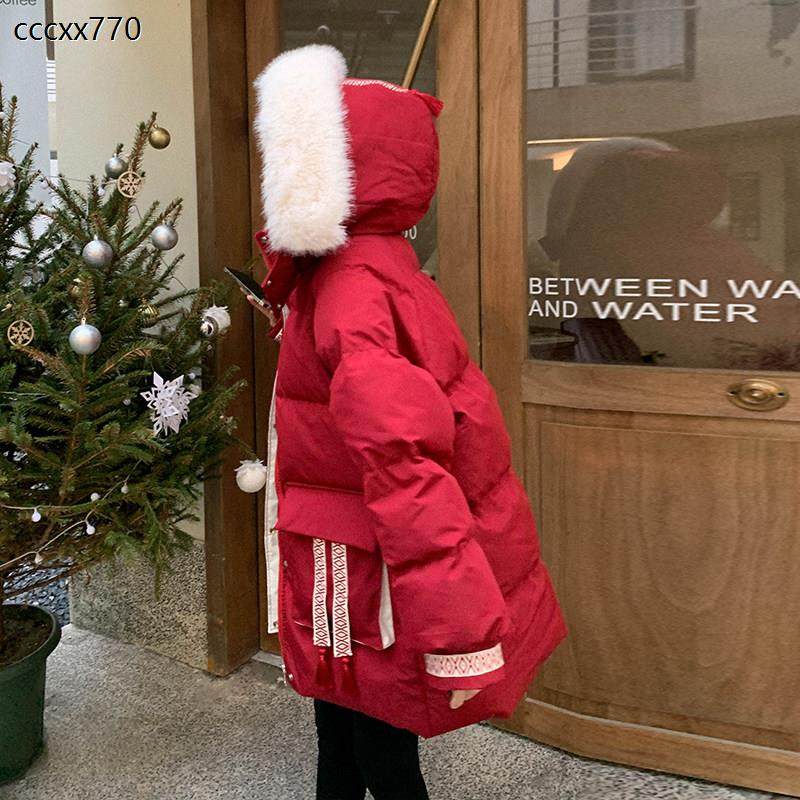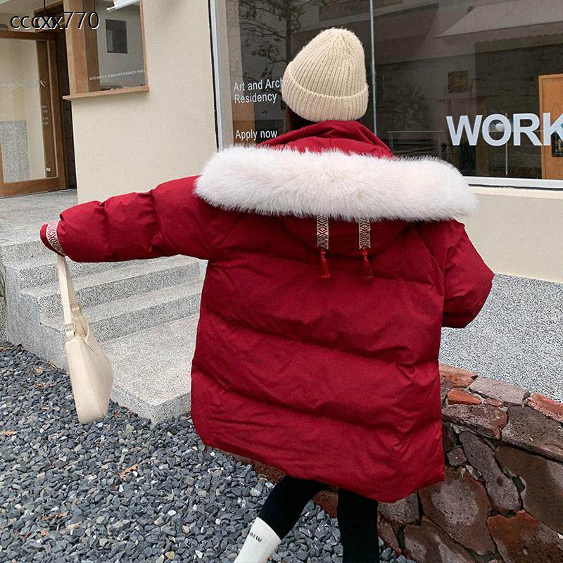 棉衣外 胖mm大毛领新年红棉服女加厚今年流行冬装 300斤大尺码 女装