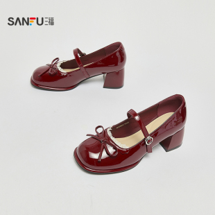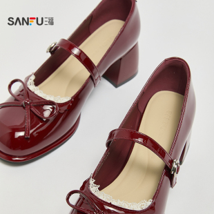 852689 千金可露丽洛丽塔风蕾丝蝴蝶结增高女鞋 三福女单鞋 春季