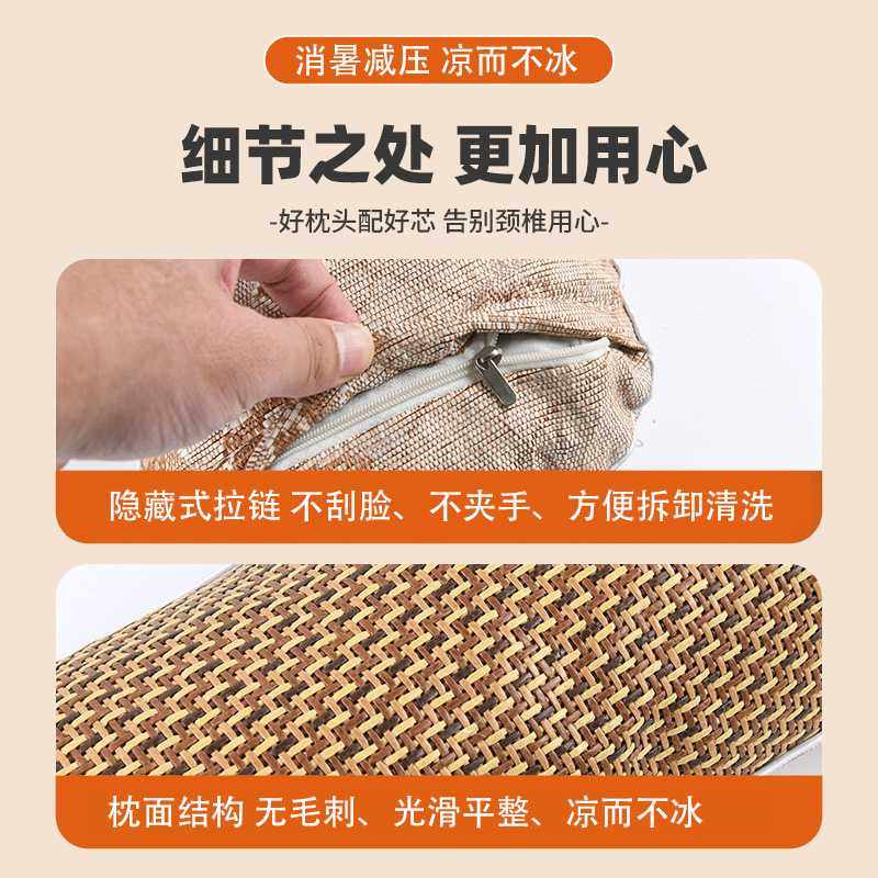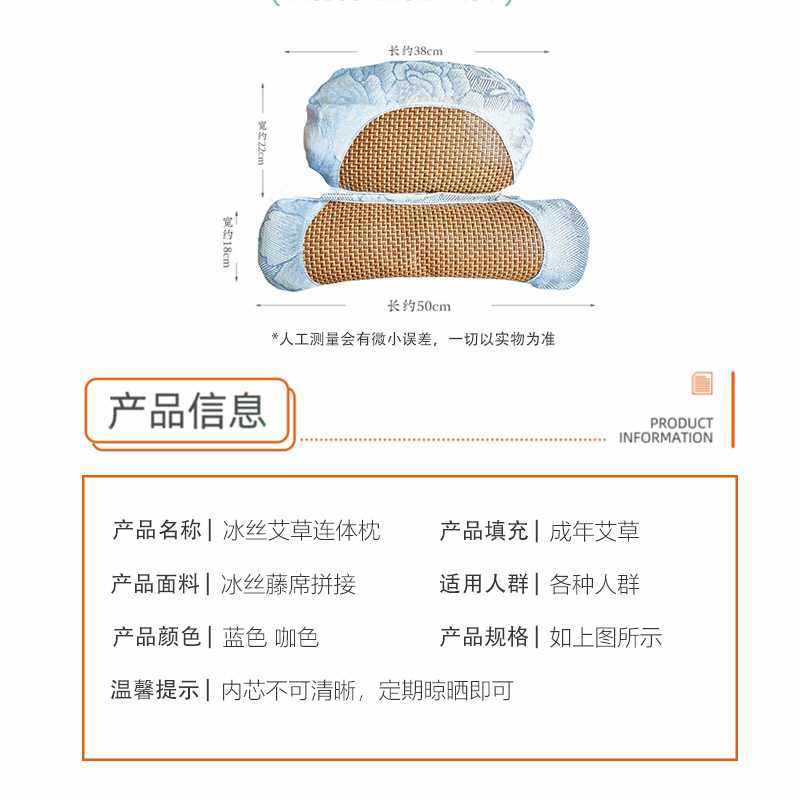 艾草颈椎枕冰丝连体枕夏季 家用可拆卸牵引护颈枕头护腰藤席拼接枕