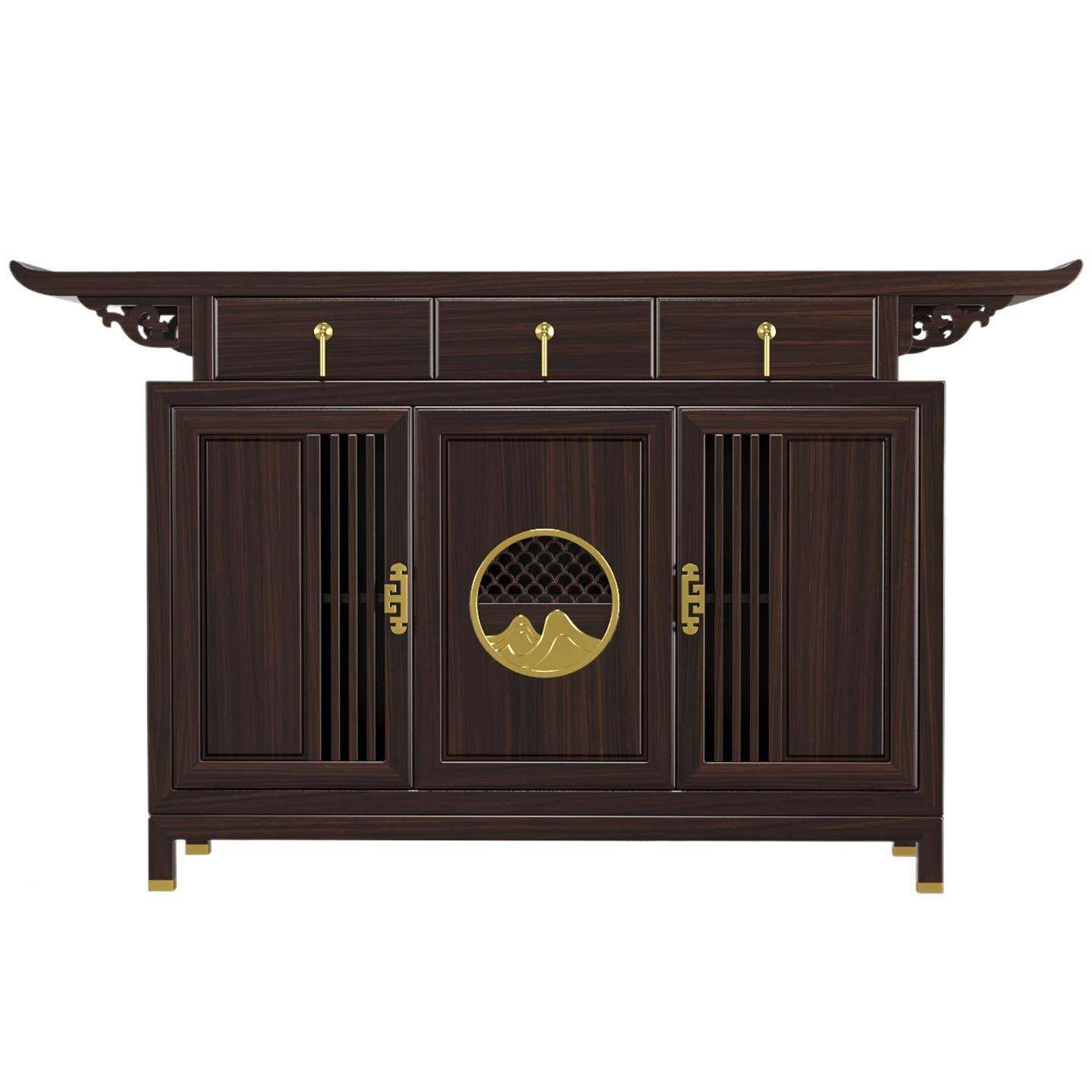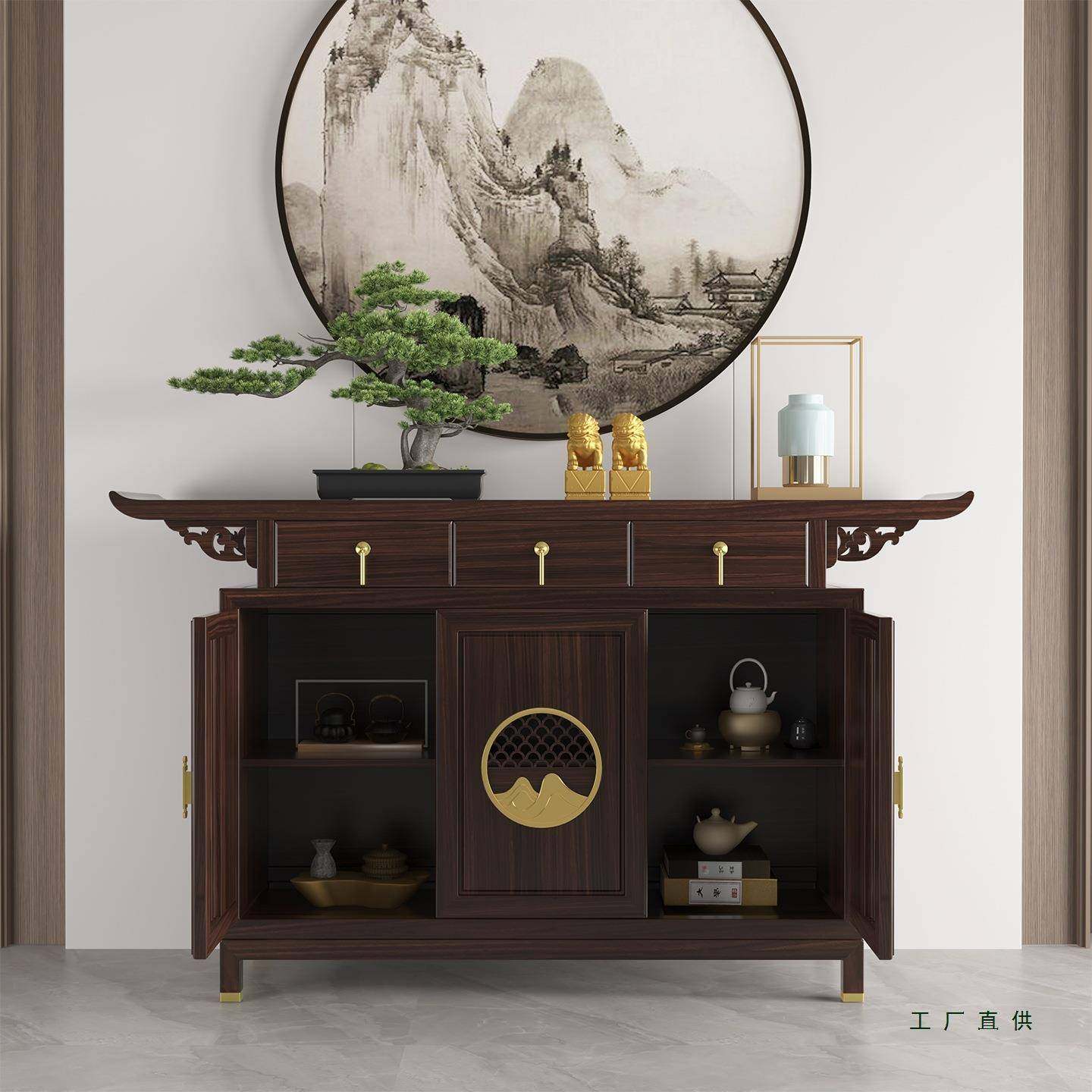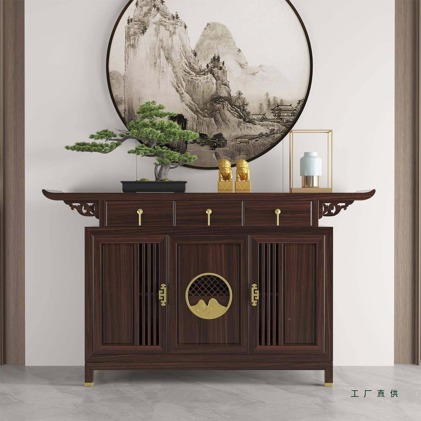 新中式 玄柜实木客供厅玄关台靠墙入户关正对门案桌条20餐边柜乌金