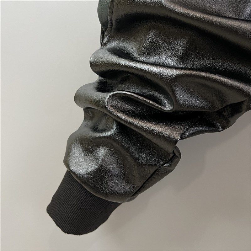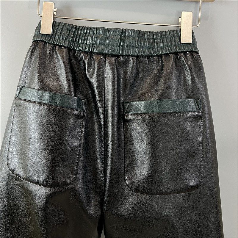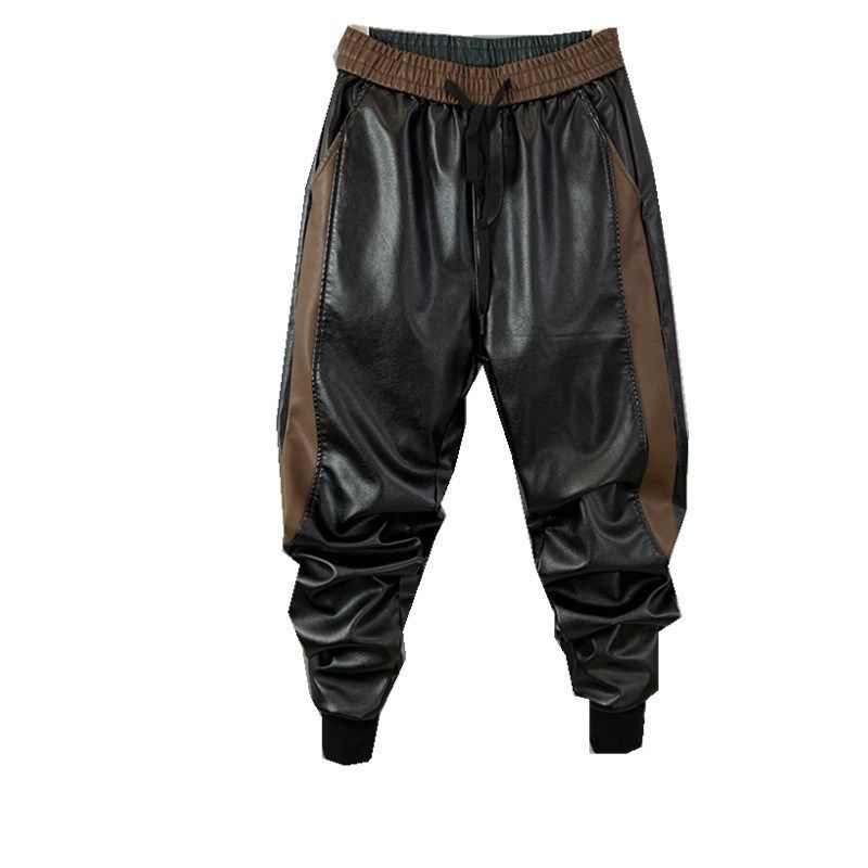 防风男仿皮PU束口宽松小脚休闲拼接长裤 加绒加厚大码 机车皮裤 冬季