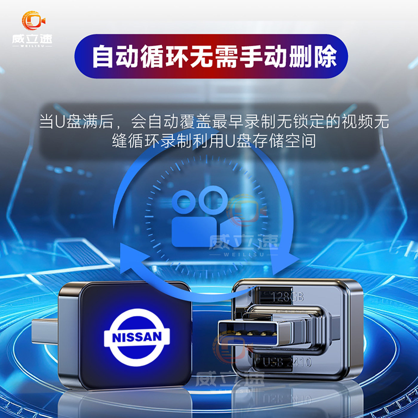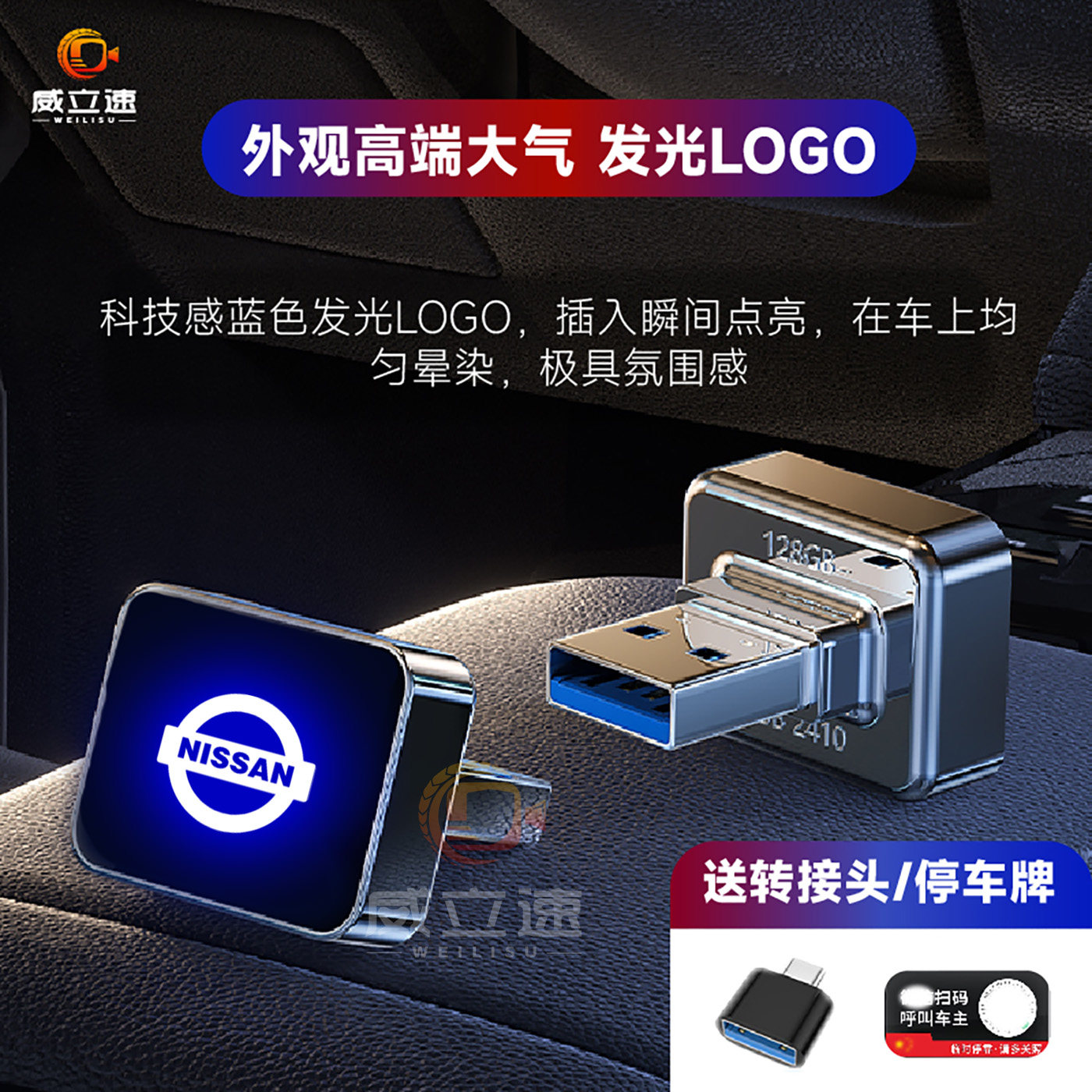 适用于26款 日产天籁鸿蒙行车记录仪专用U盘高速usb发光车载优盘