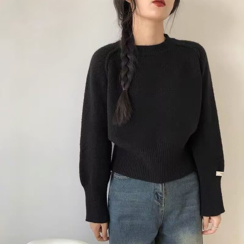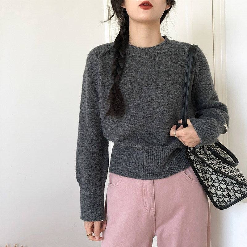 高级感上衣宽松打底针织衫 圆领100%纯山羊绒衫 女高端毛衣秋冬新款