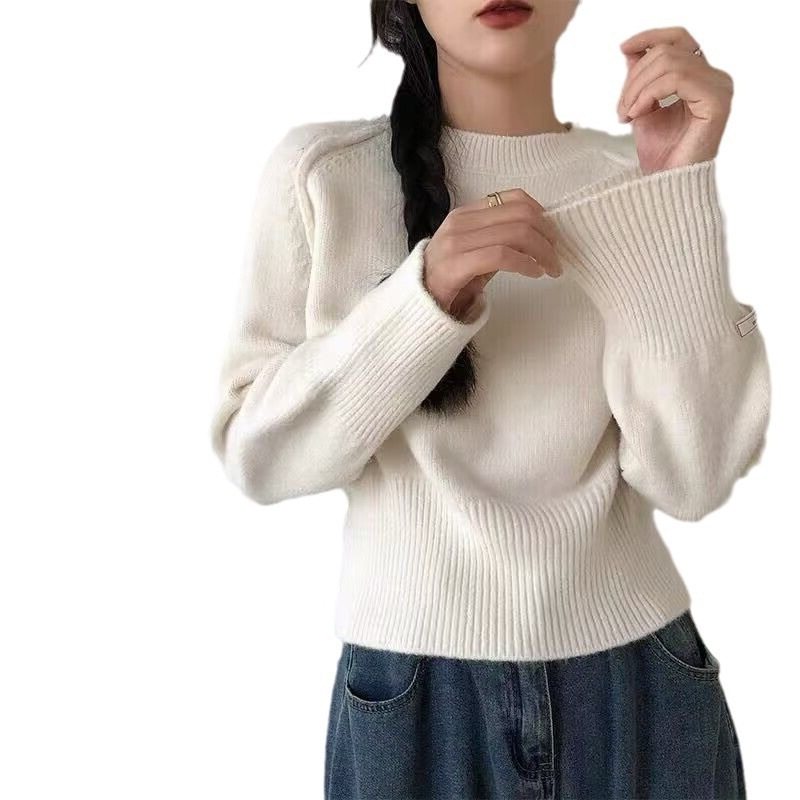 针织打底衫 品牌高级感羊毛衫 女半高领宽松毛衣秋冬加厚羊绒长袖