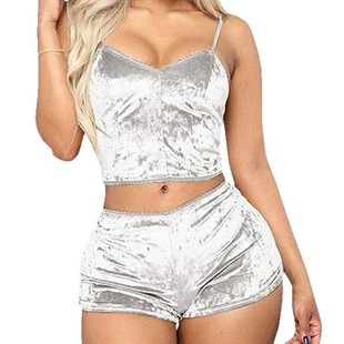 Velvet Strap Shorts Women Set女金丝绒睡衣套装 Gold Pajama