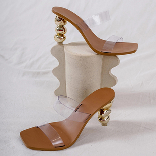 透明凉鞋 夏细跟凉拖一字带高跟鞋 女仙女风度假 女外穿2020新款 拖鞋