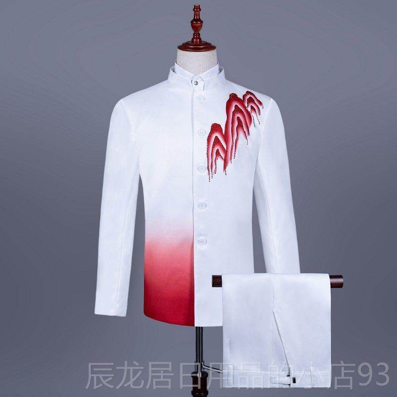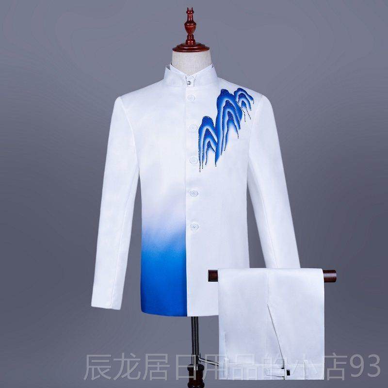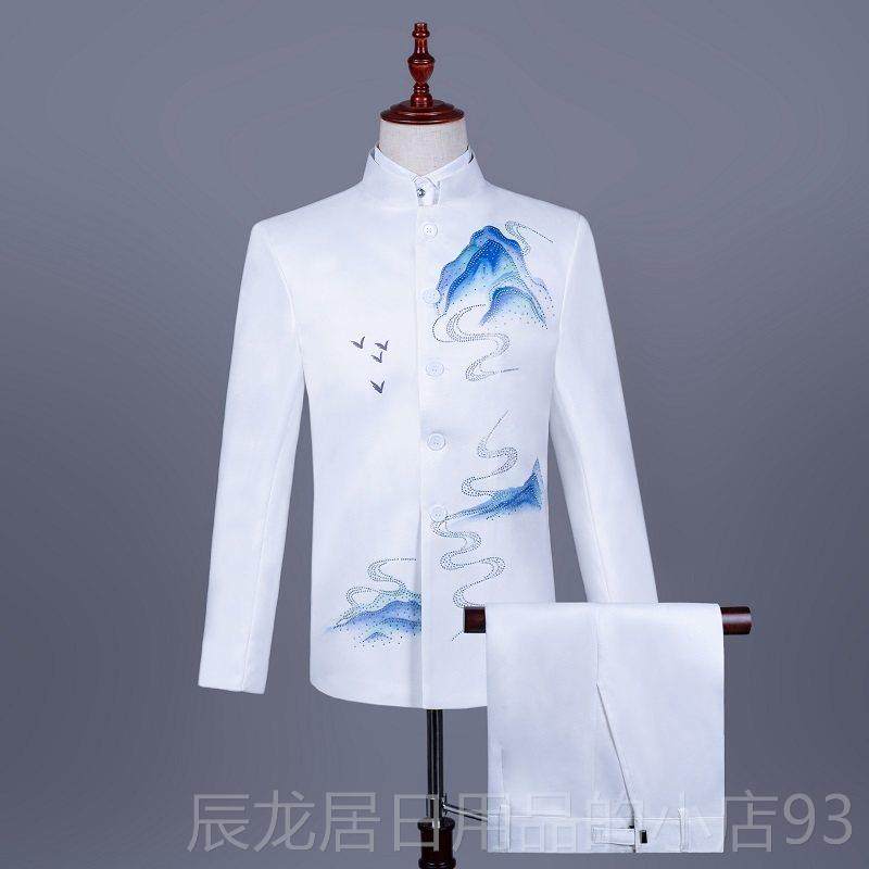 金竹刺绣男孩成人礼服西装 新中式 国风立领中山装 订婚衣服套装 男士