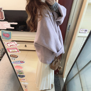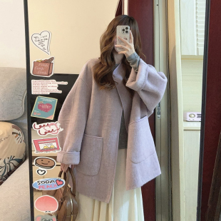 温柔风香芋紫毛呢外套女秋冬小个子中长款 宽松大口袋呢子大衣秋质