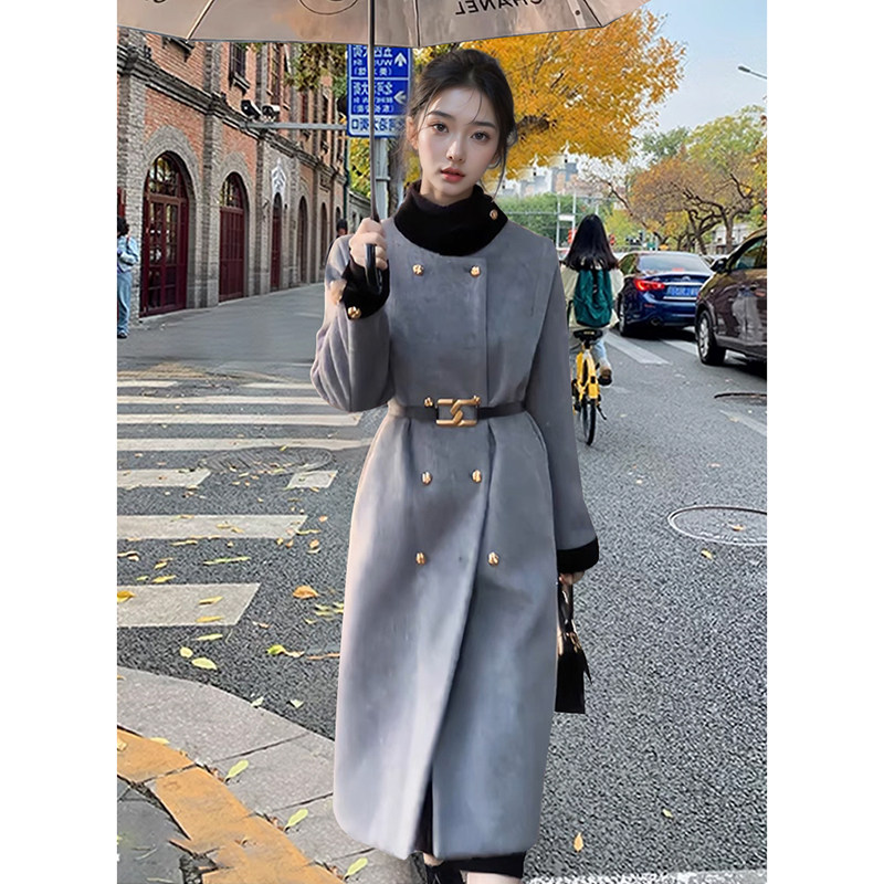 春秋新款 宽松中长款 立领双排扣呢子大衣女 气质时尚 巴黎画报