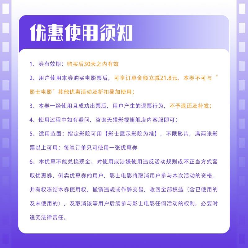 电影票无门槛代金券全国通用特惠购票 双人21.8元 阿凡达火与烬