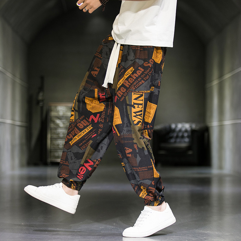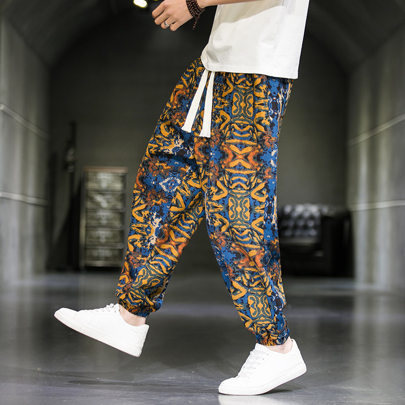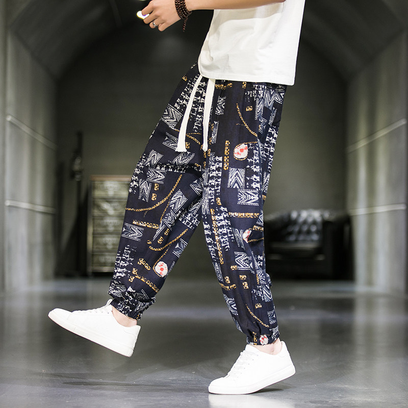 子中国风透气休闲裤 花裤 男国潮胯裆大码 阔腿裤 夏季 束脚灯笼裤 薄款