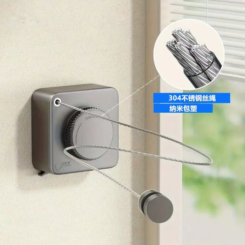可伸缩钢丝晾衣绳子阳台室内免打孔隐形收缩晒被子神器不锈钢衣架