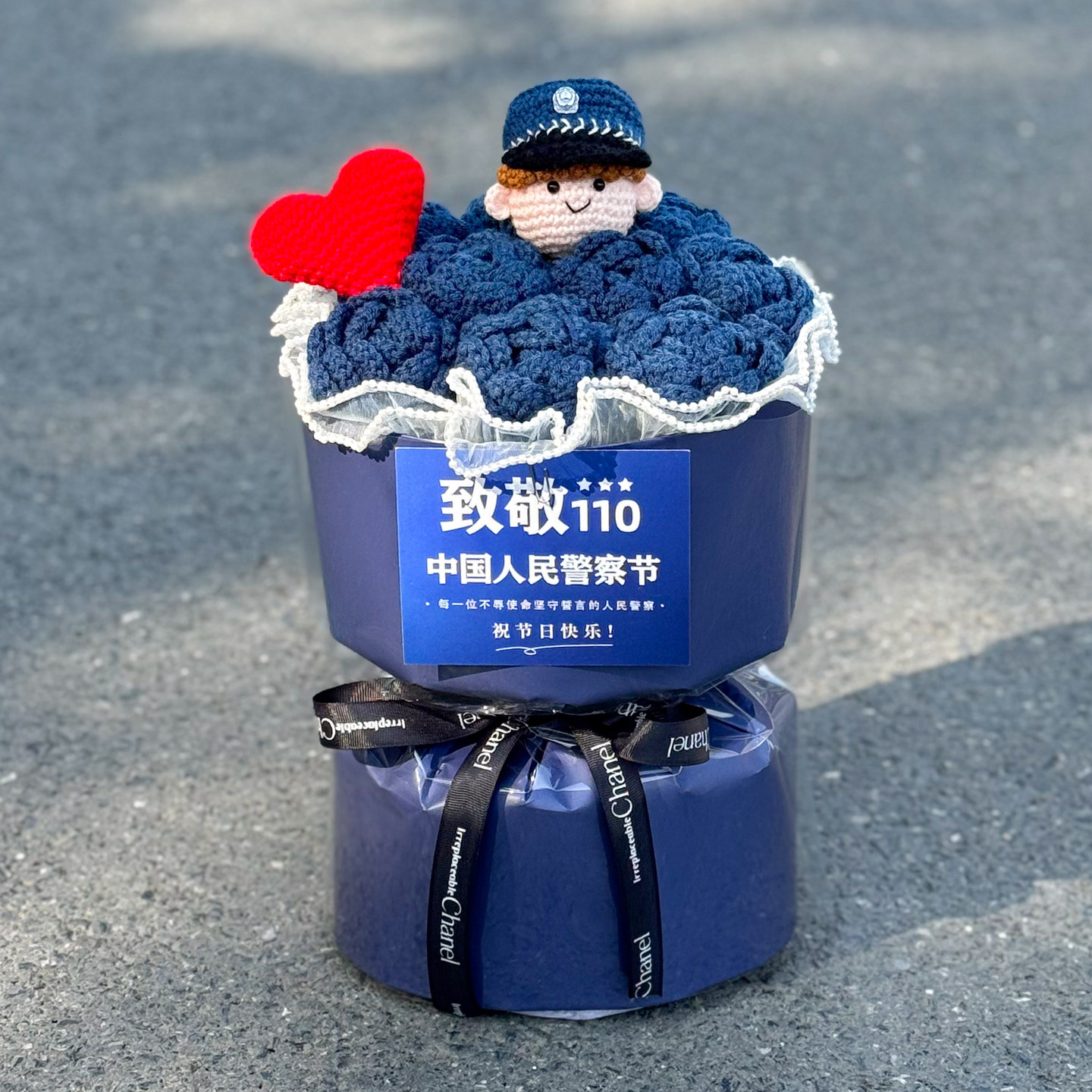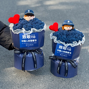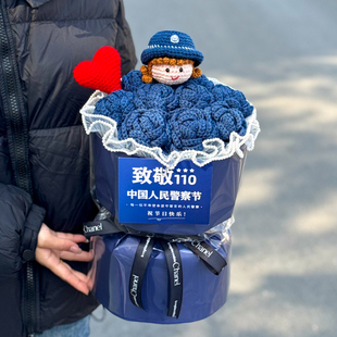 警察节手工编织毛线玫瑰花束送亲朋男女友朋友仪式 感惊喜创意礼物