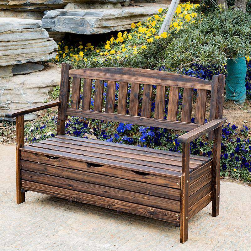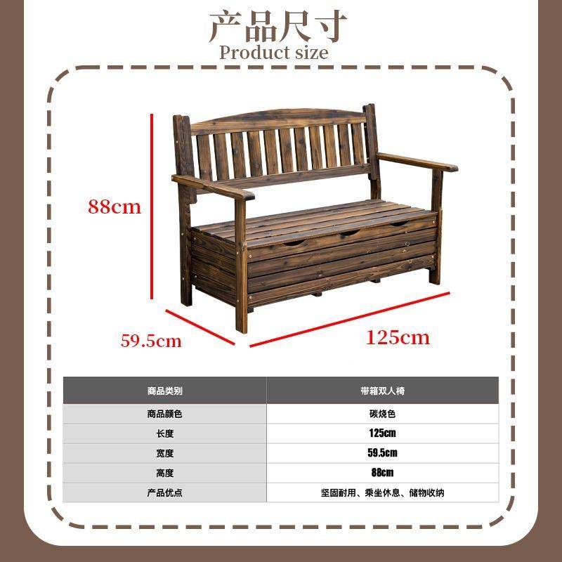 室腐外防木长椅WFA子靠背休闲椅子花园园庭院储物椅凳户外公双人