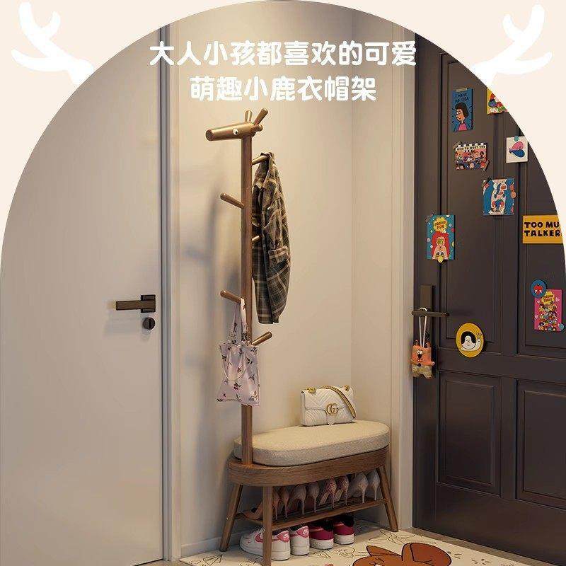 凳 柜一体卡通创意可坐衣帽架穿鞋 实木小鹿换鞋 凳家用门口入户鞋
