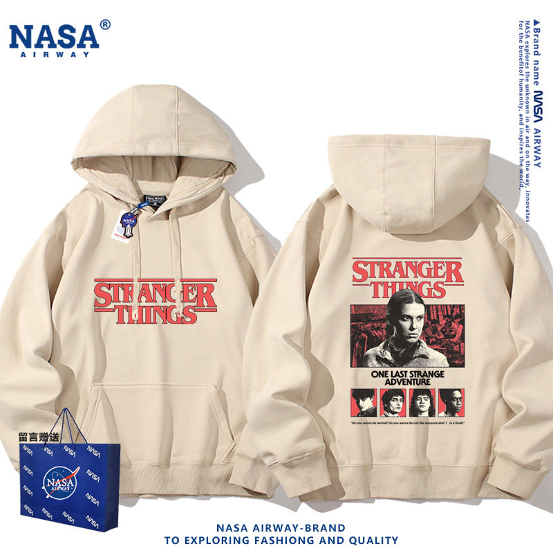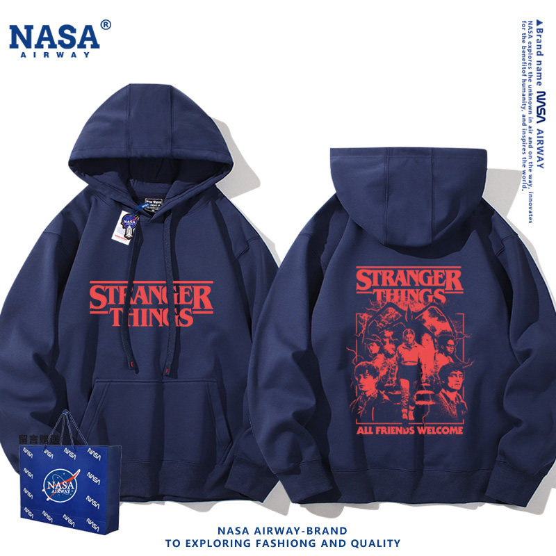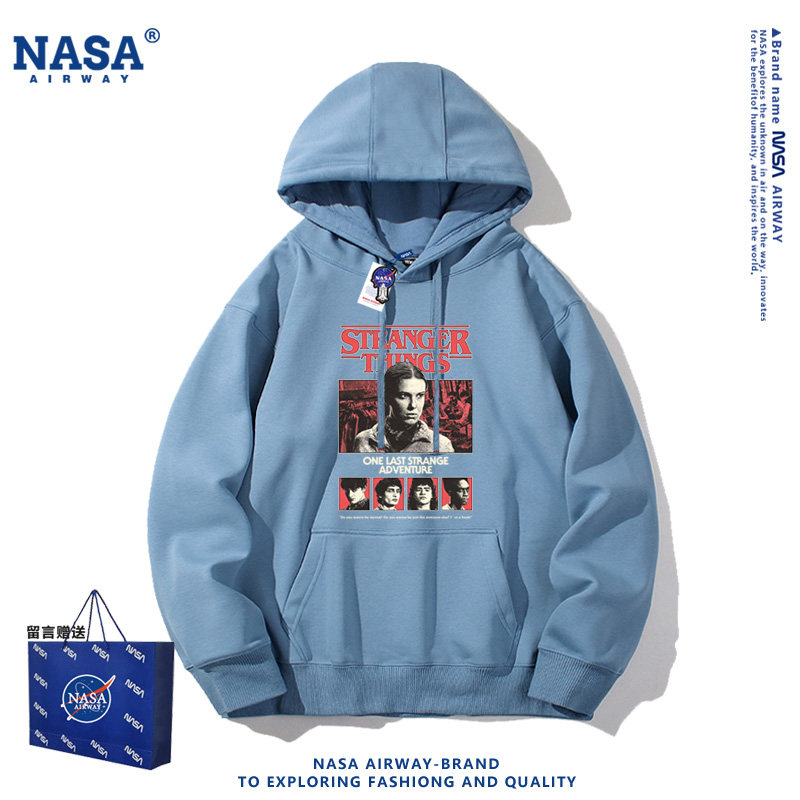 打底衫 卫衣宽松加绒加厚套头青少年圆领长袖 男士 NASA原创秋冬季