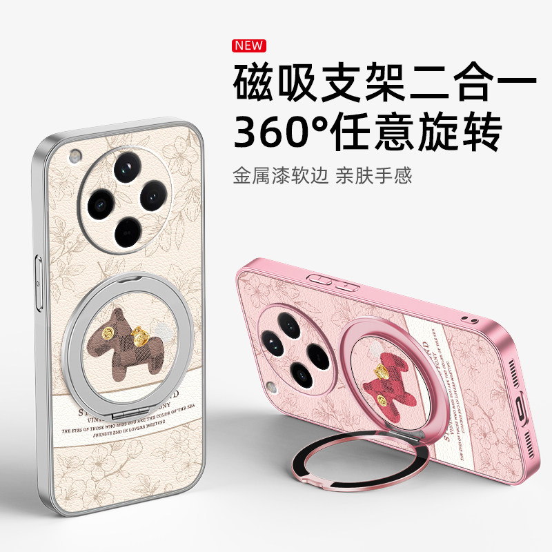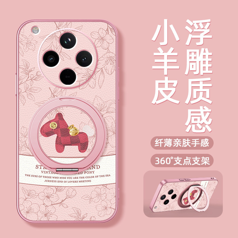 Findx5磁吸支架x3女款 findx6新款 2026马年卡通小羊皮防摔 findx7 格纹小马适用oppoFindx9pro手机壳findx8