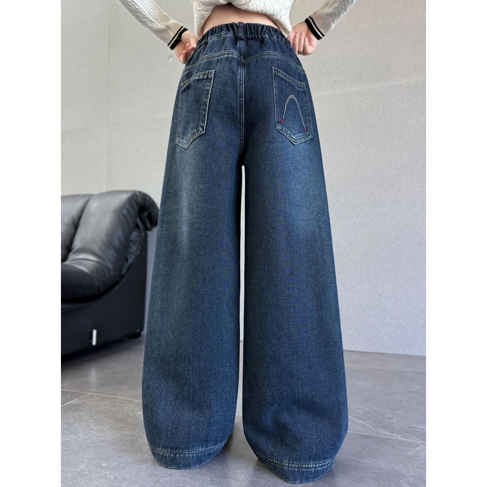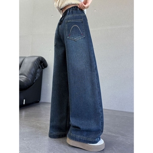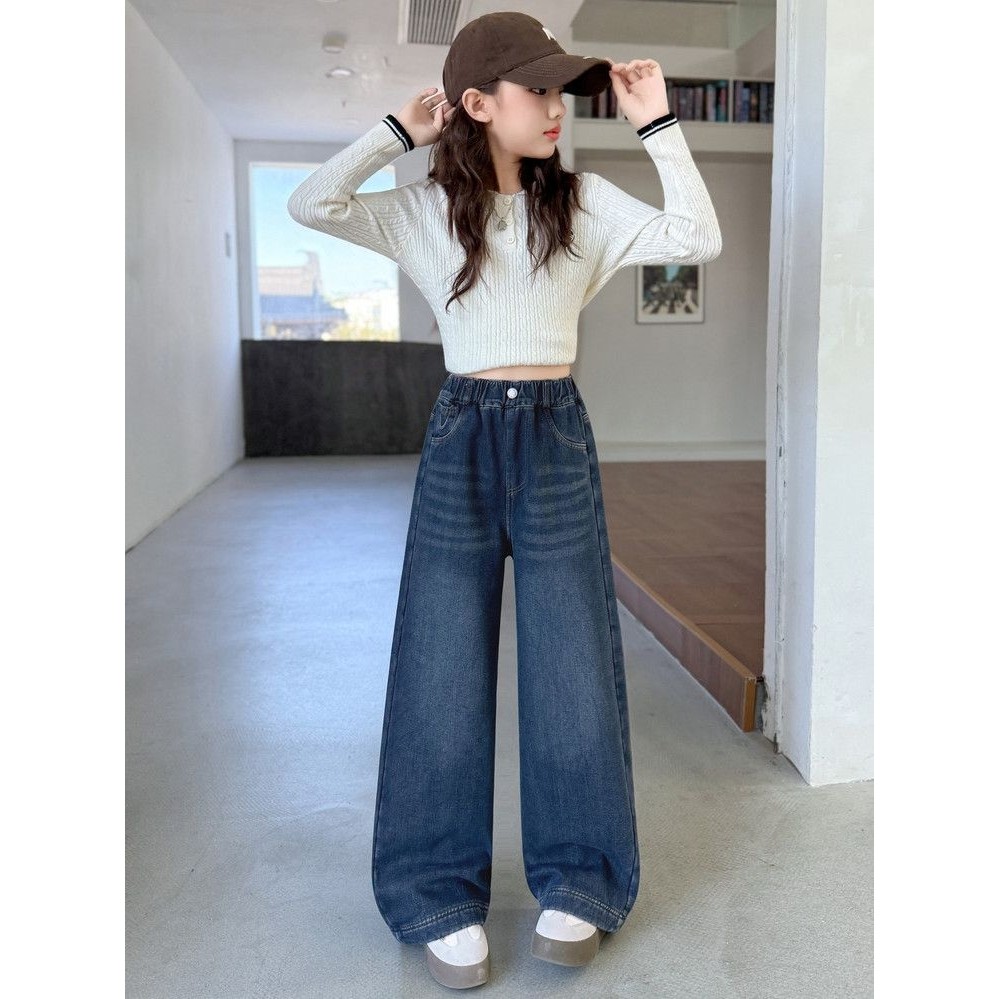 加绒宽松直筒阔腿裤 女童春秋牛仔裤 洋气冬装 中大儿童韩版 2025新款