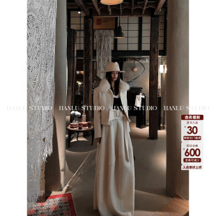 HANLU STUDIO解构不规则立裁流动线条茧型设计100绵羊毛半身裙白