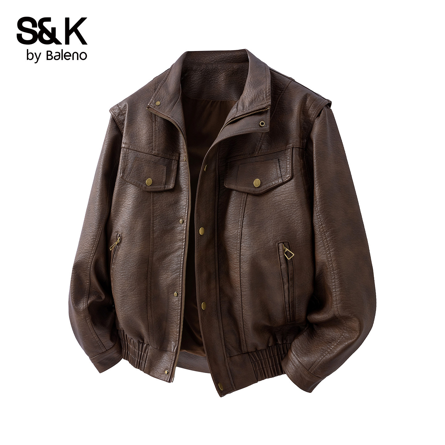 班尼路SK美拉德复古外套男款 翻领防风设计感宽松皮夹克YS 春夏美式
