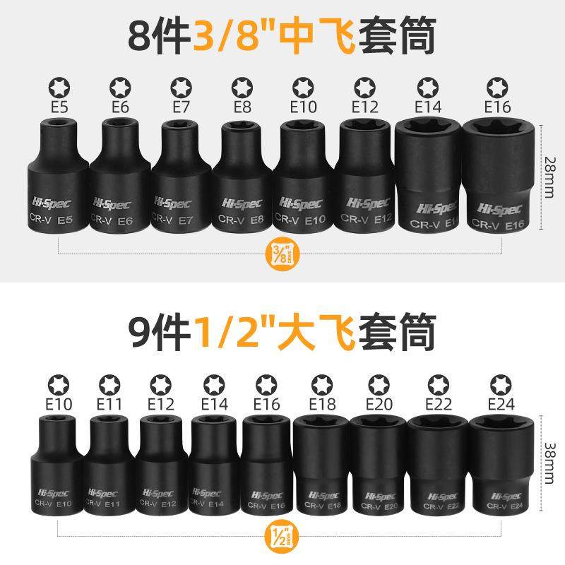 e型套筒内外六花套筒头梅花套筒e8e10e12e14花型汽修工具 Spec