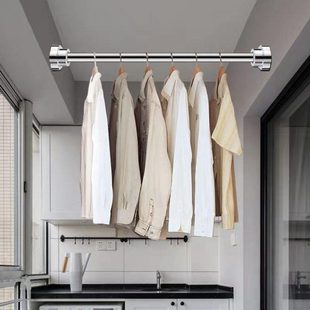 不锈钢可伸缩晾衣杆悬挂式 家用阳台晾衣神器衣服被子架升降衣架