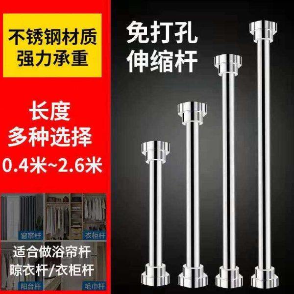 打孔伸缩晾衣杆阳台固定式 晾衣架窗帘杆衣柜卫生间撑杆一根挂杆